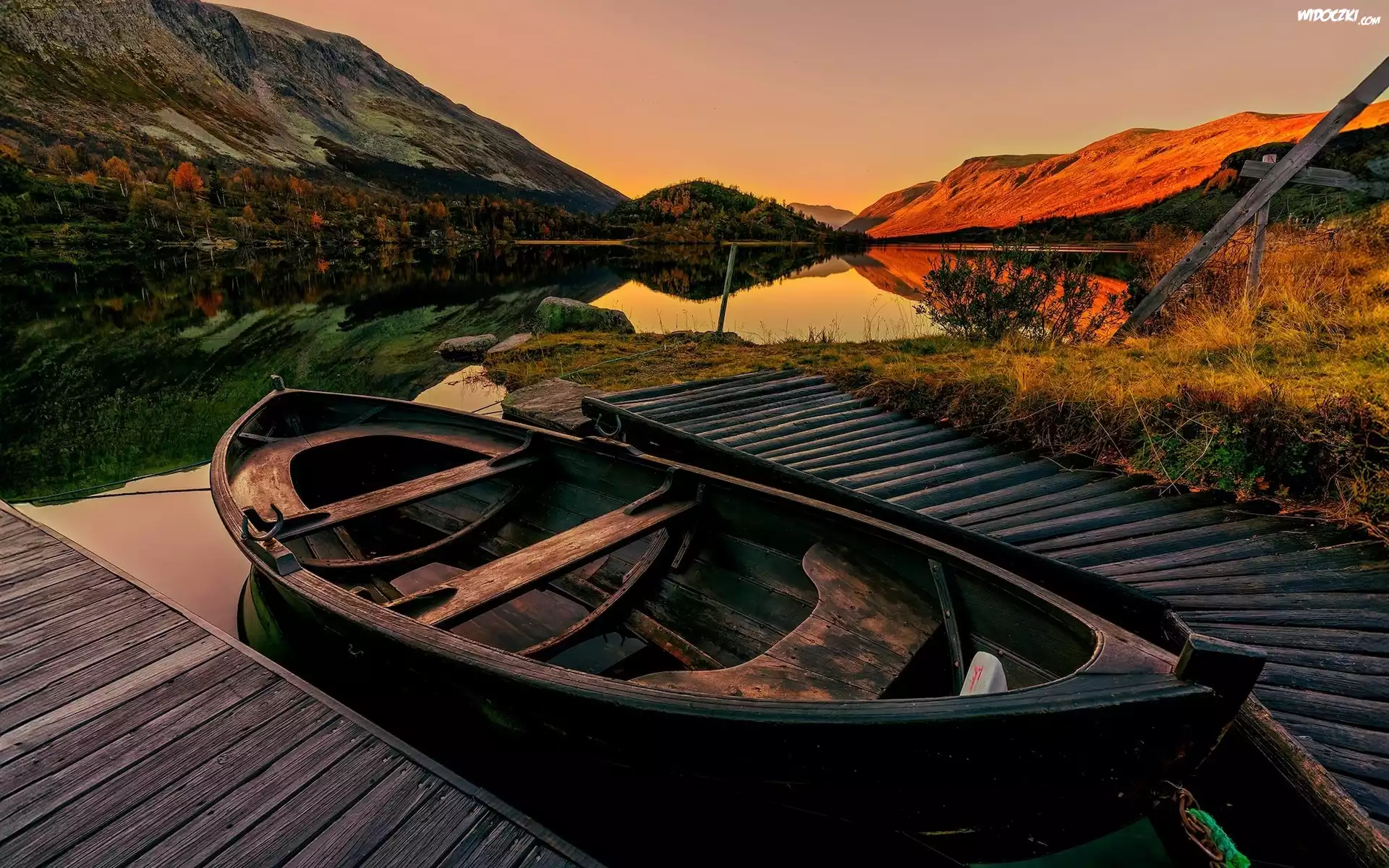 Góry, Jezioro, Pomost, Łódka
