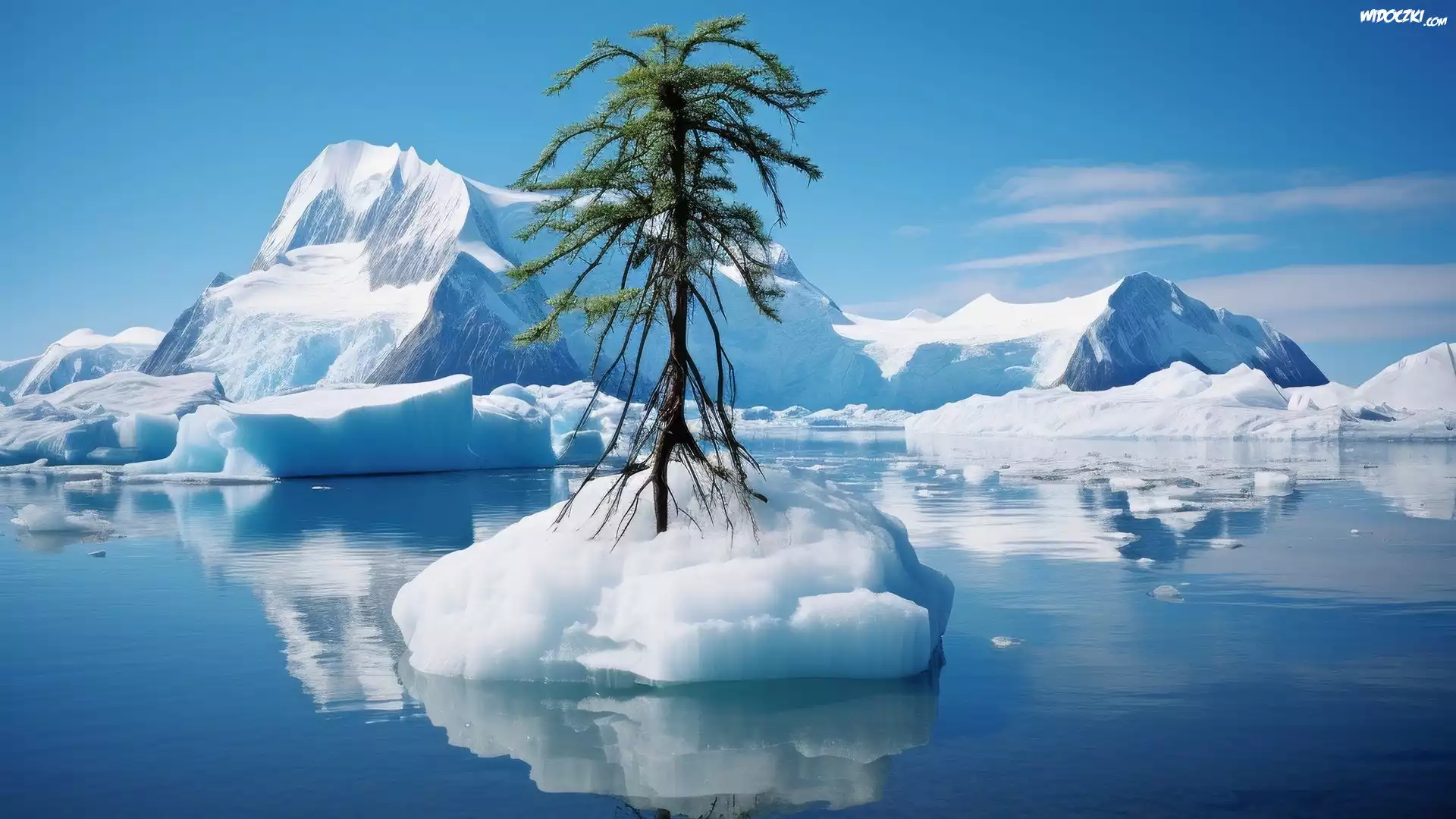Zdjęcia, Góry lodowe, Morze, Drzewo, Grafika