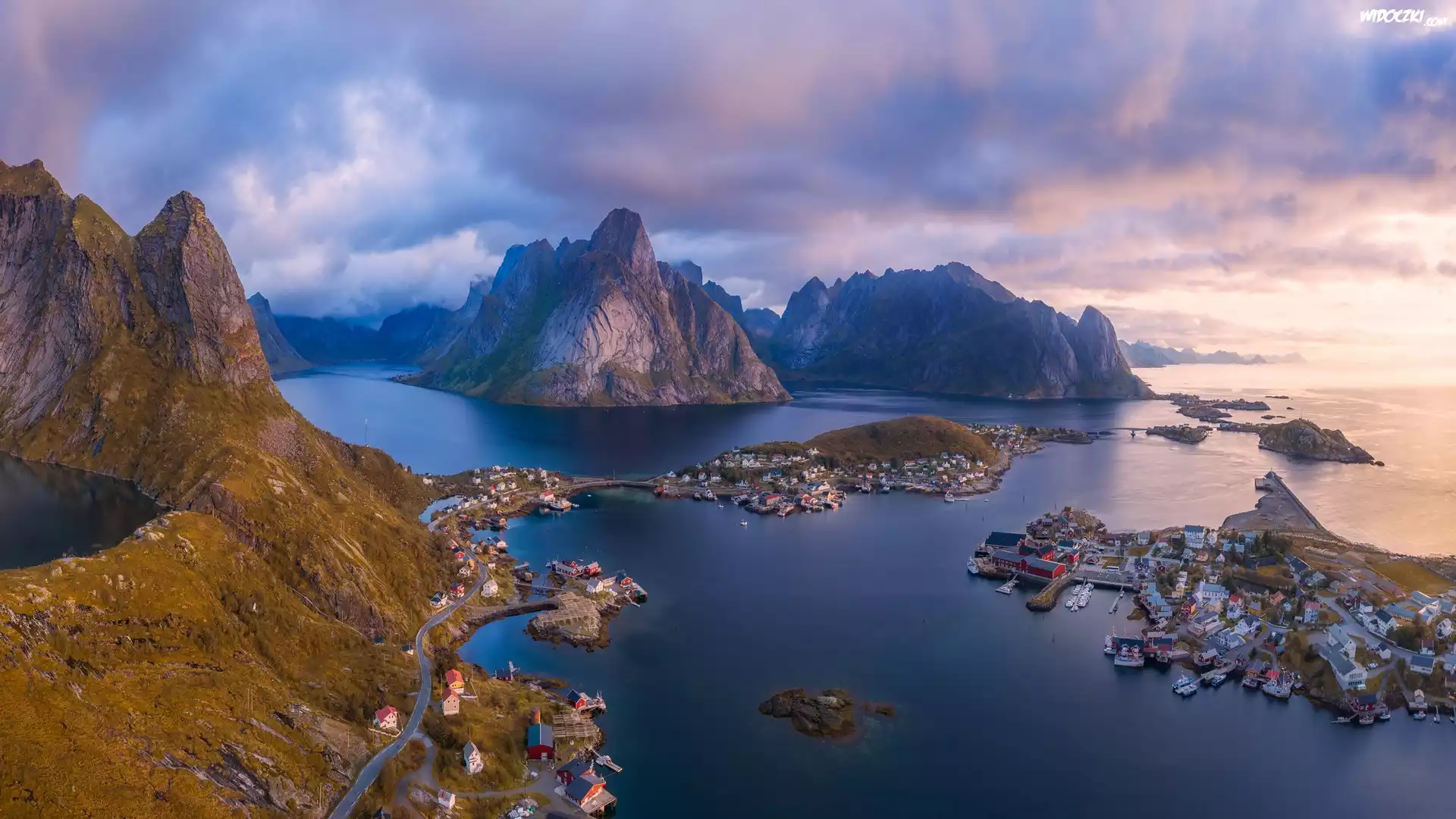Zdjęcia, Norwegia, Lofoty, Góry, Morze Północne, Domy, Wioski, Chmury