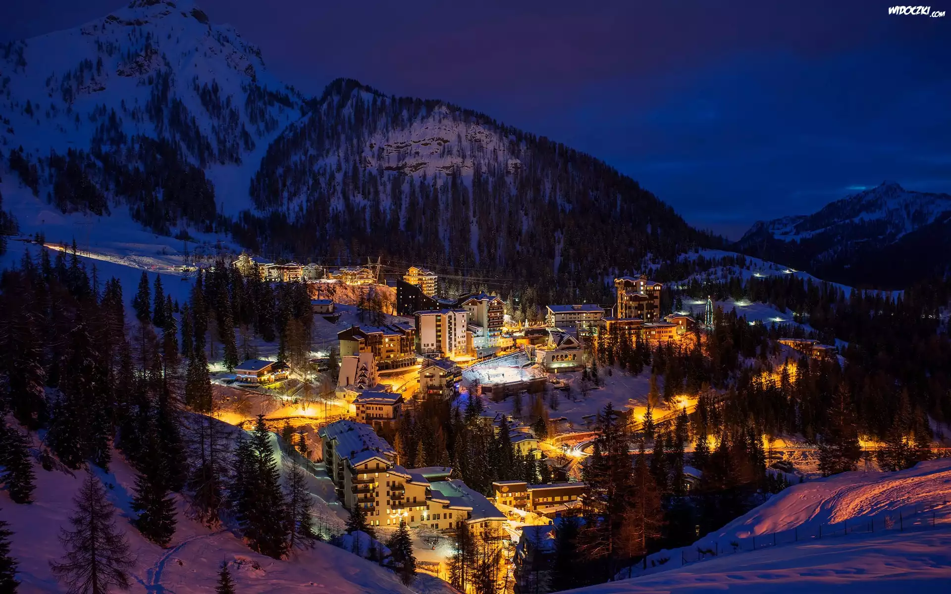 Zdjęcia, Bergamo, Lombardia, Miasteczko, Turystyczne, Góry, Lasy, Włochy, Zima