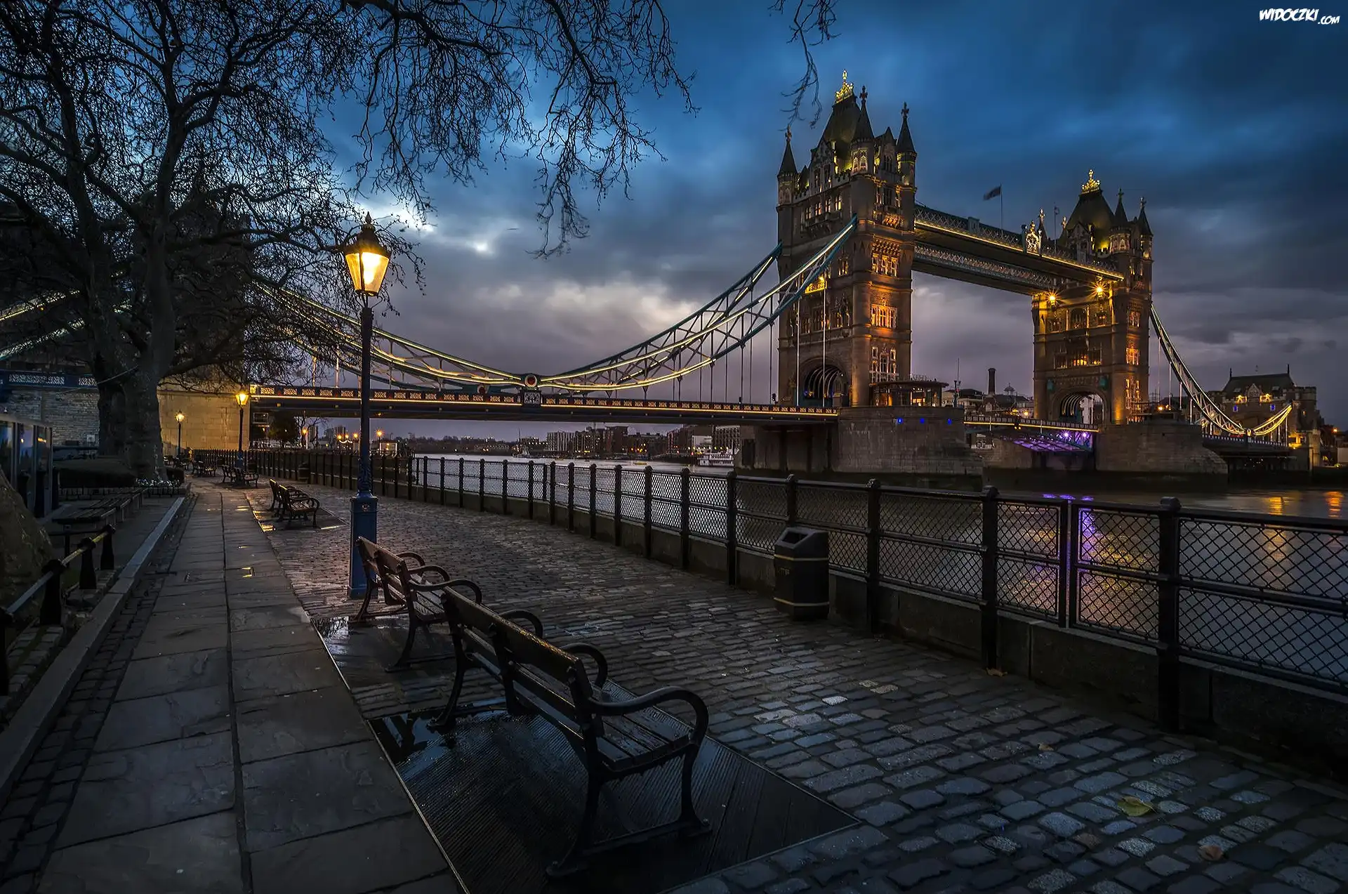 Zdjęcia, Londyn, Most, Rzeka, Latarnia, Miasto nocą