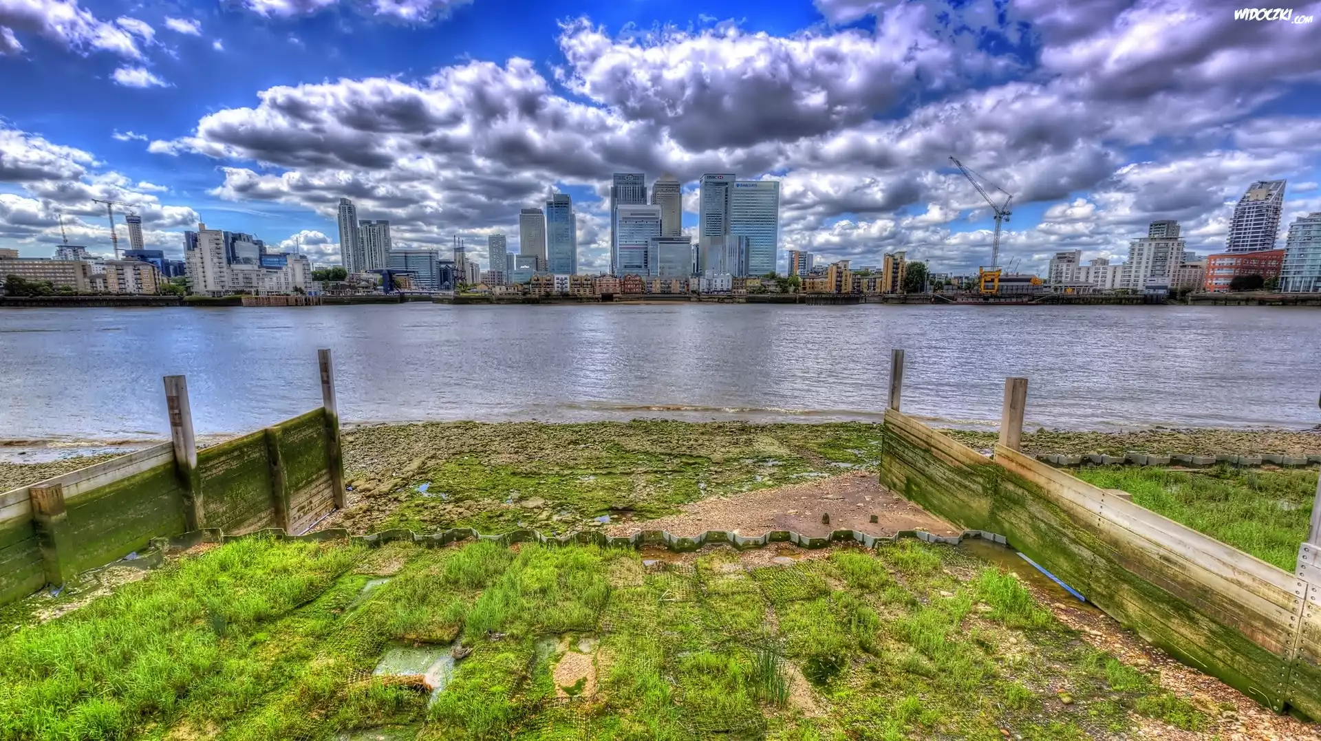 Zdjęcia, Londyn, Chmury, Rzeka, Wieżowce