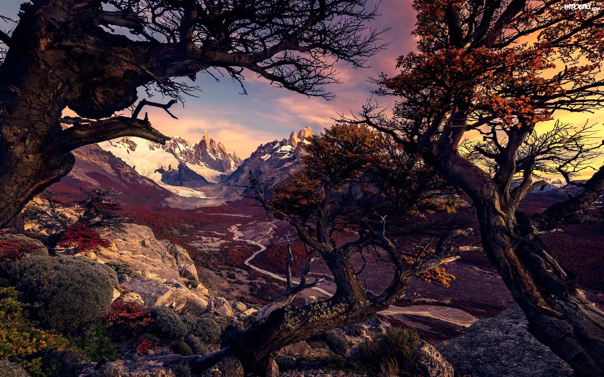 Argentyna, Patagonia, Góry, Andy, Park Narodowy Los Glaciares, Drzewa, Droga, Jesień