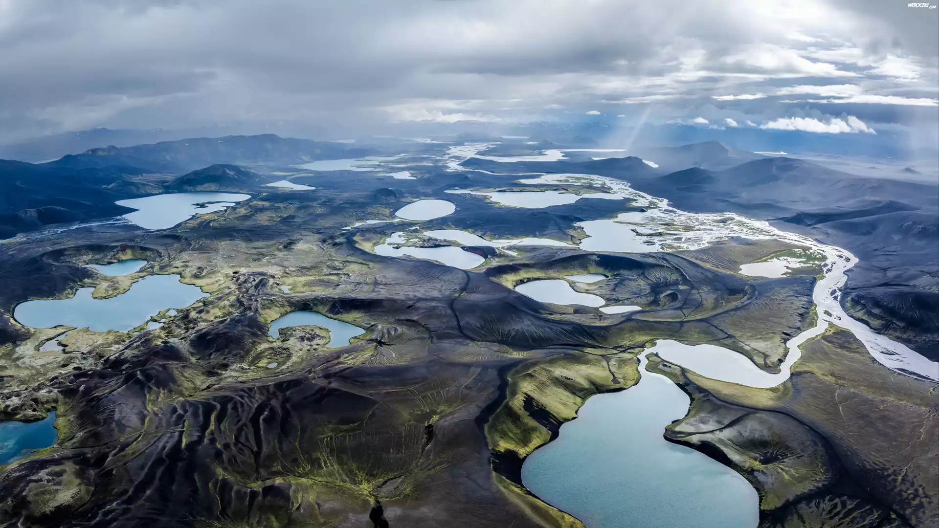 Islandia, Jeziora, Chmury Z lotu ptaka, Góry