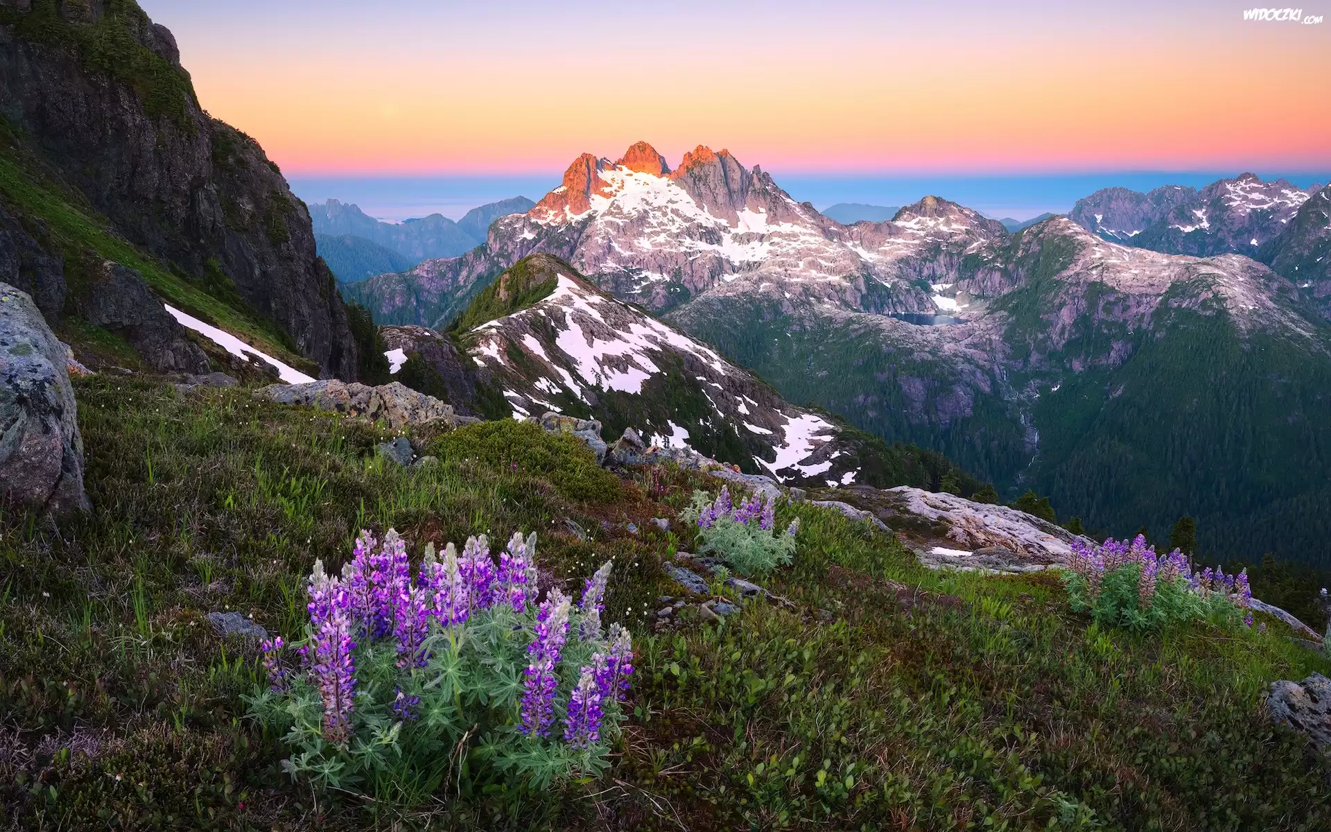 Zdjęcia, Góry, Skały, Łąka, Łubin