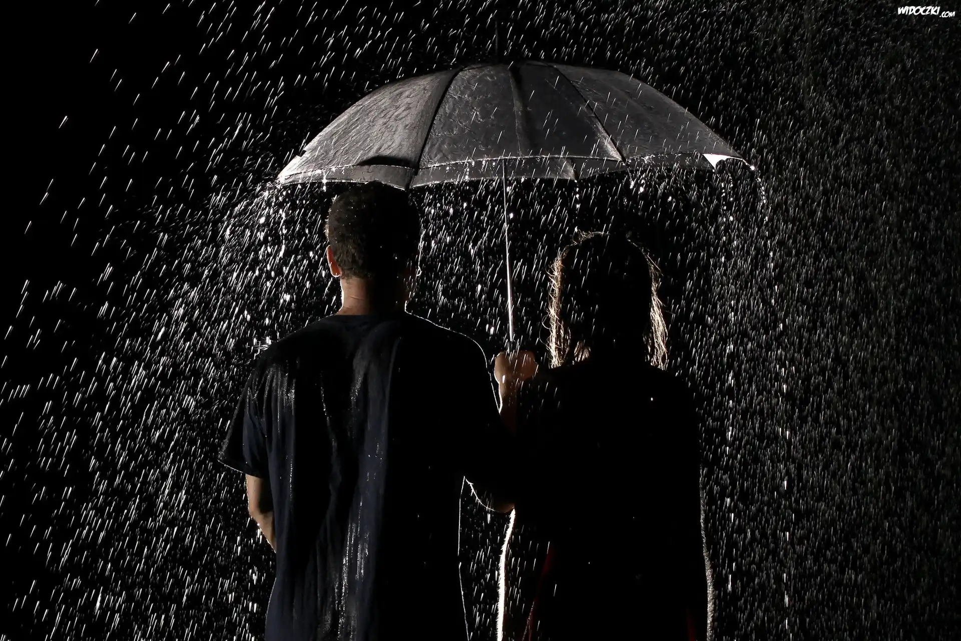 Zdjęcia, Ludzie, Deszcz, Parasol, Noc