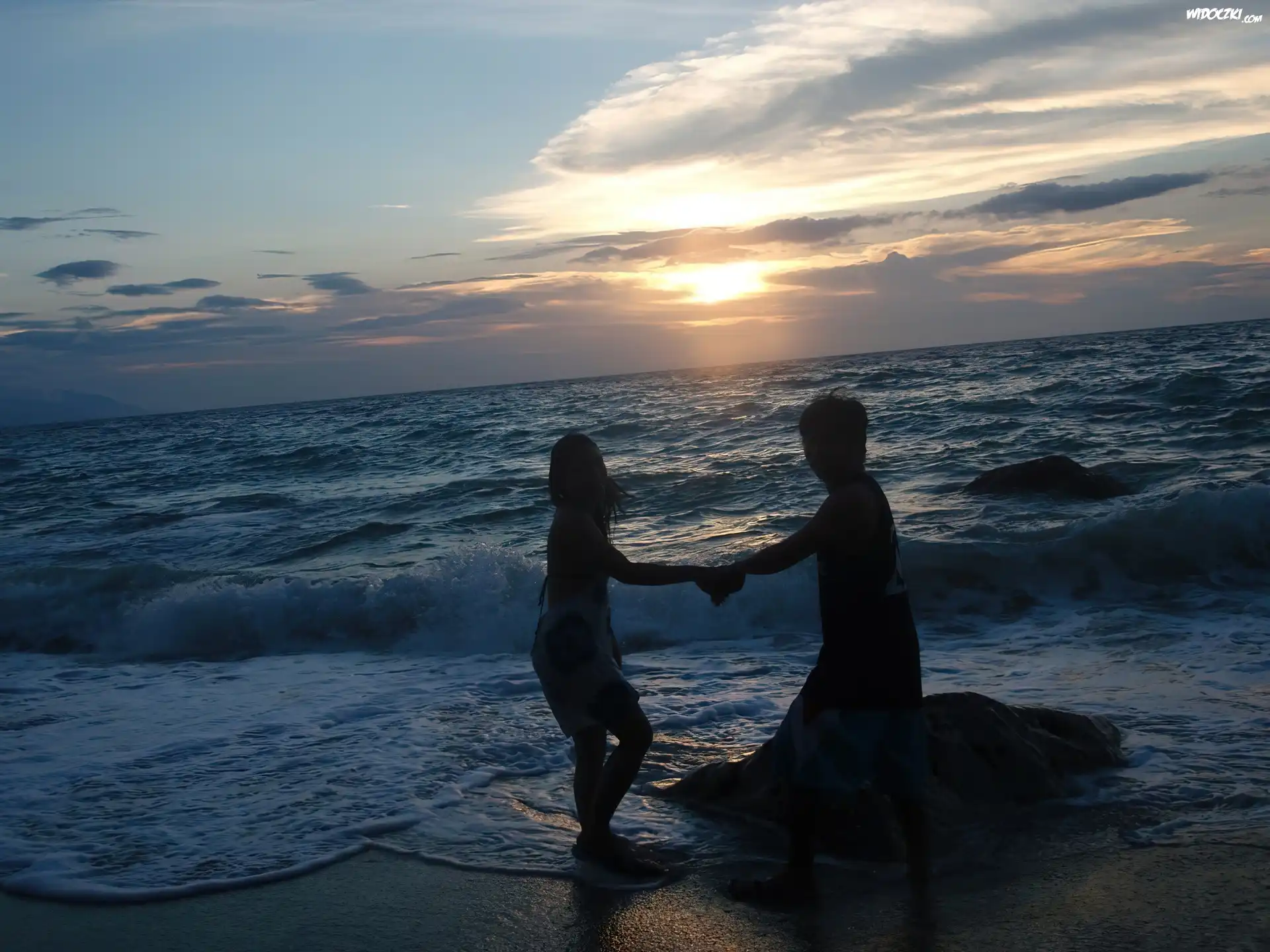 Zdjęcia, Ludzie, Morze, Chmury, Zachód Słońca