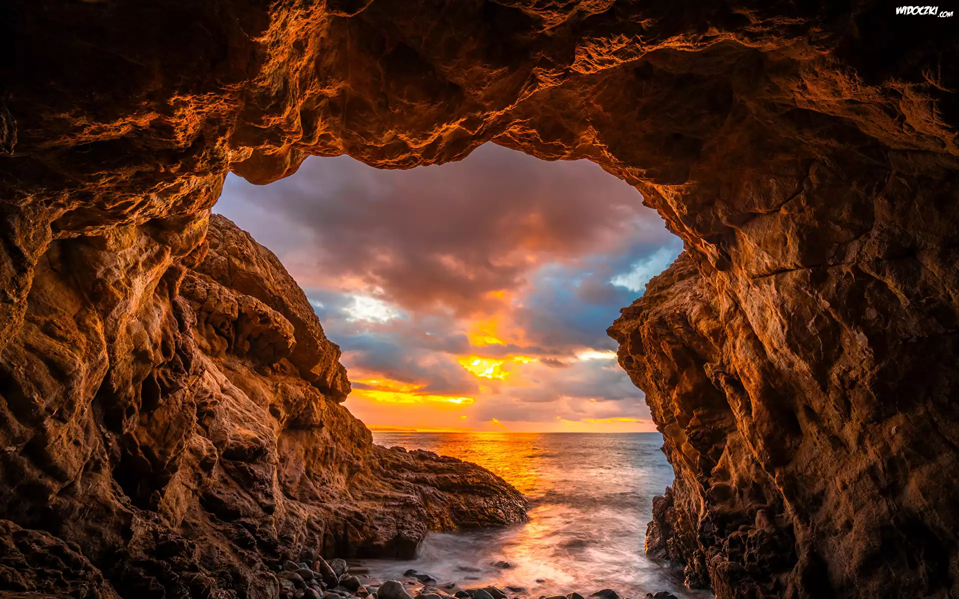 Zdjęcia, Skały, Łuk, Morze, Zachód słońca