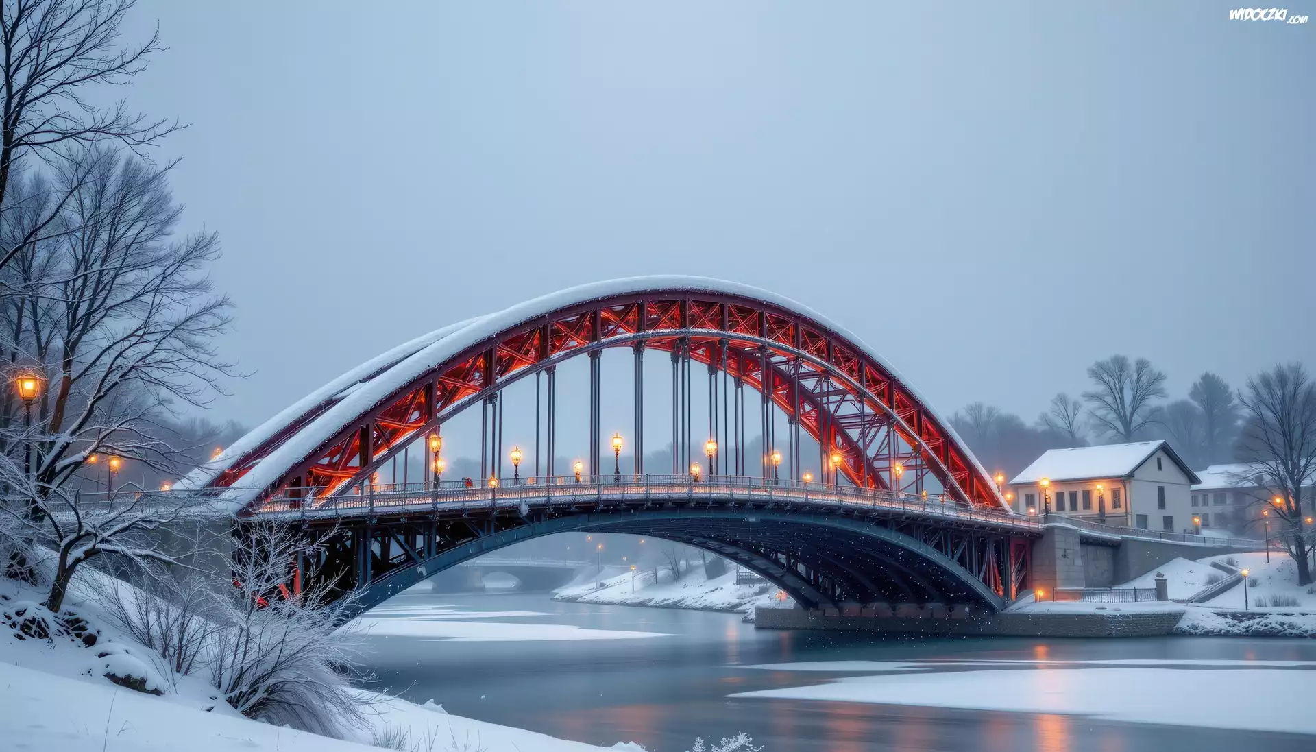 Zdjęcia, Most, Łukowy, Latarnie, Rzeka, Zima
