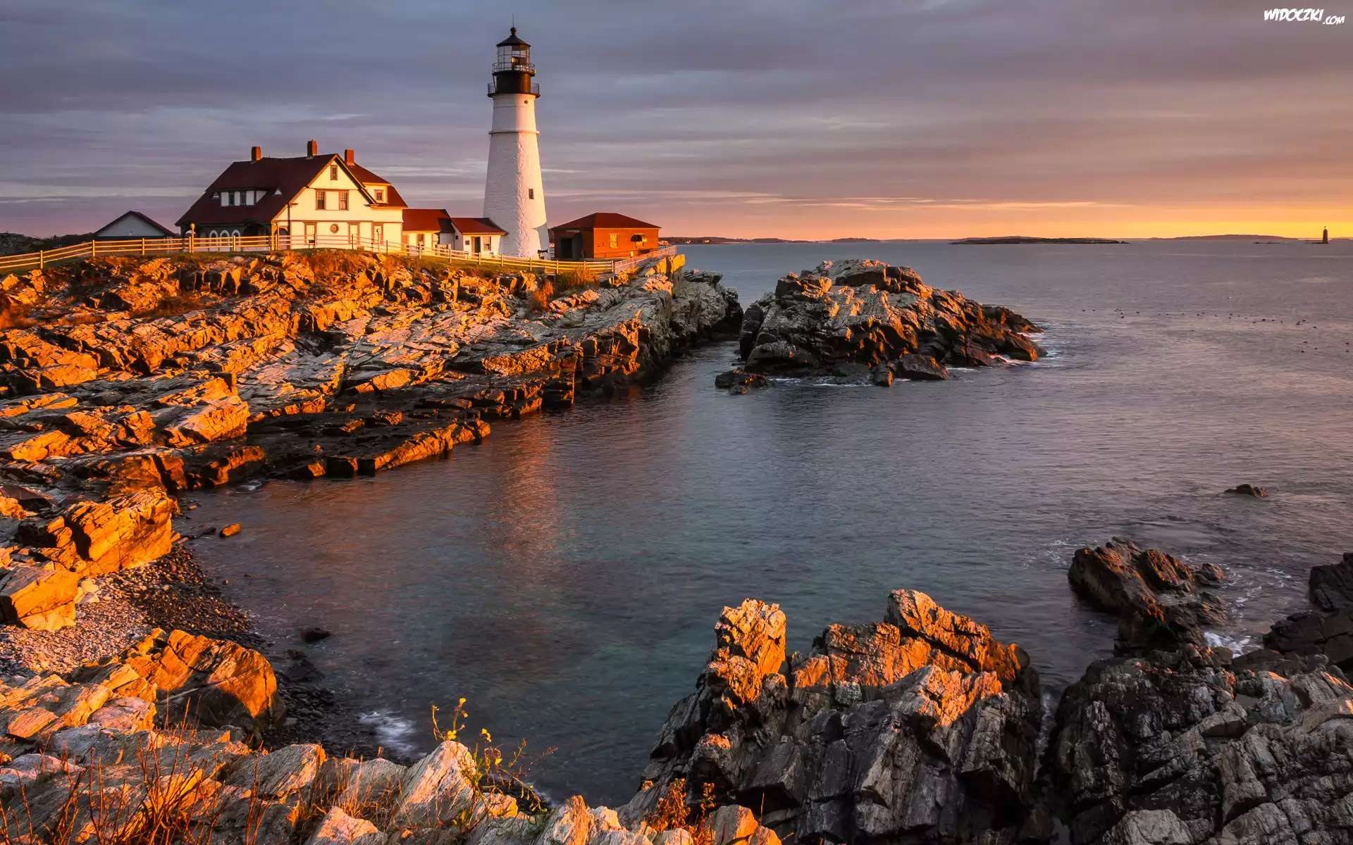 Zdjęcia, Stany Zjednoczone, Stan Maine, Morze, Skały, Latarnia morska, Portland Head Light, Cape Elizabeth
