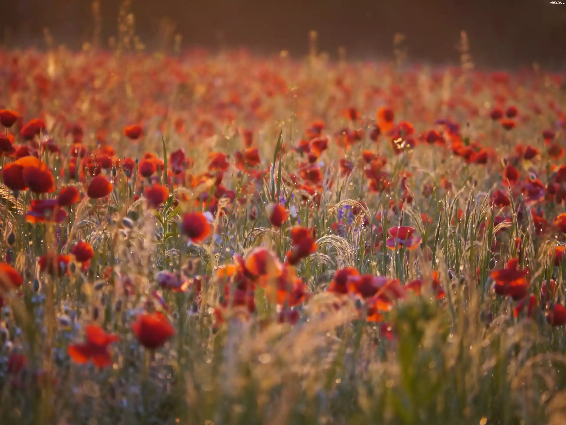 Zdjęcia, Łąka, Maki, Trawy