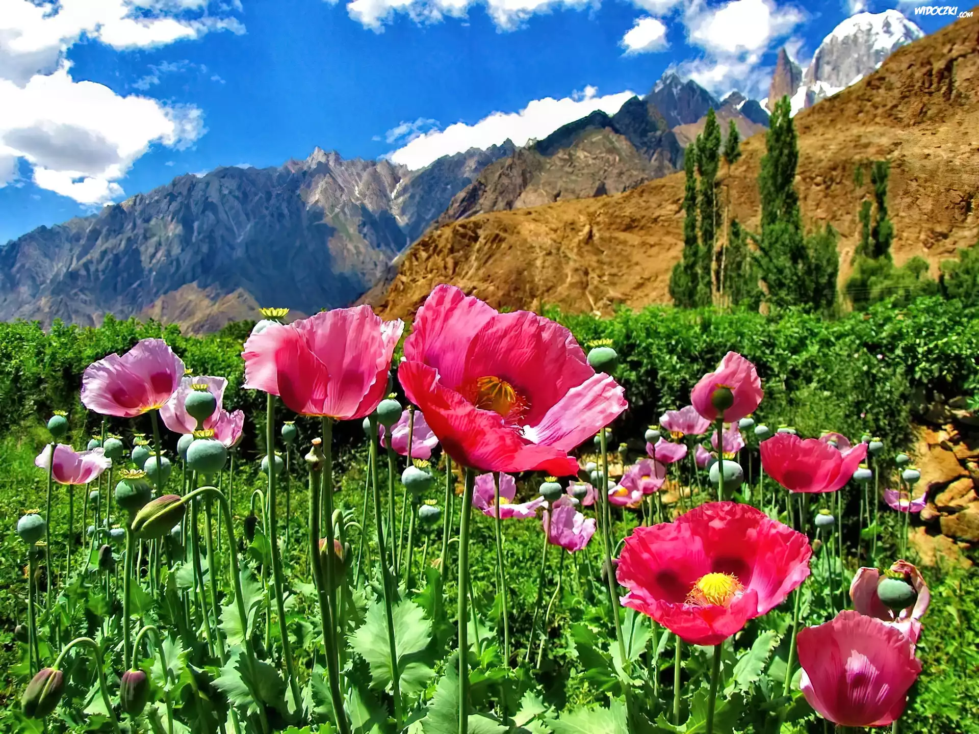 Zdjęcia, Pole, Maki, Góry