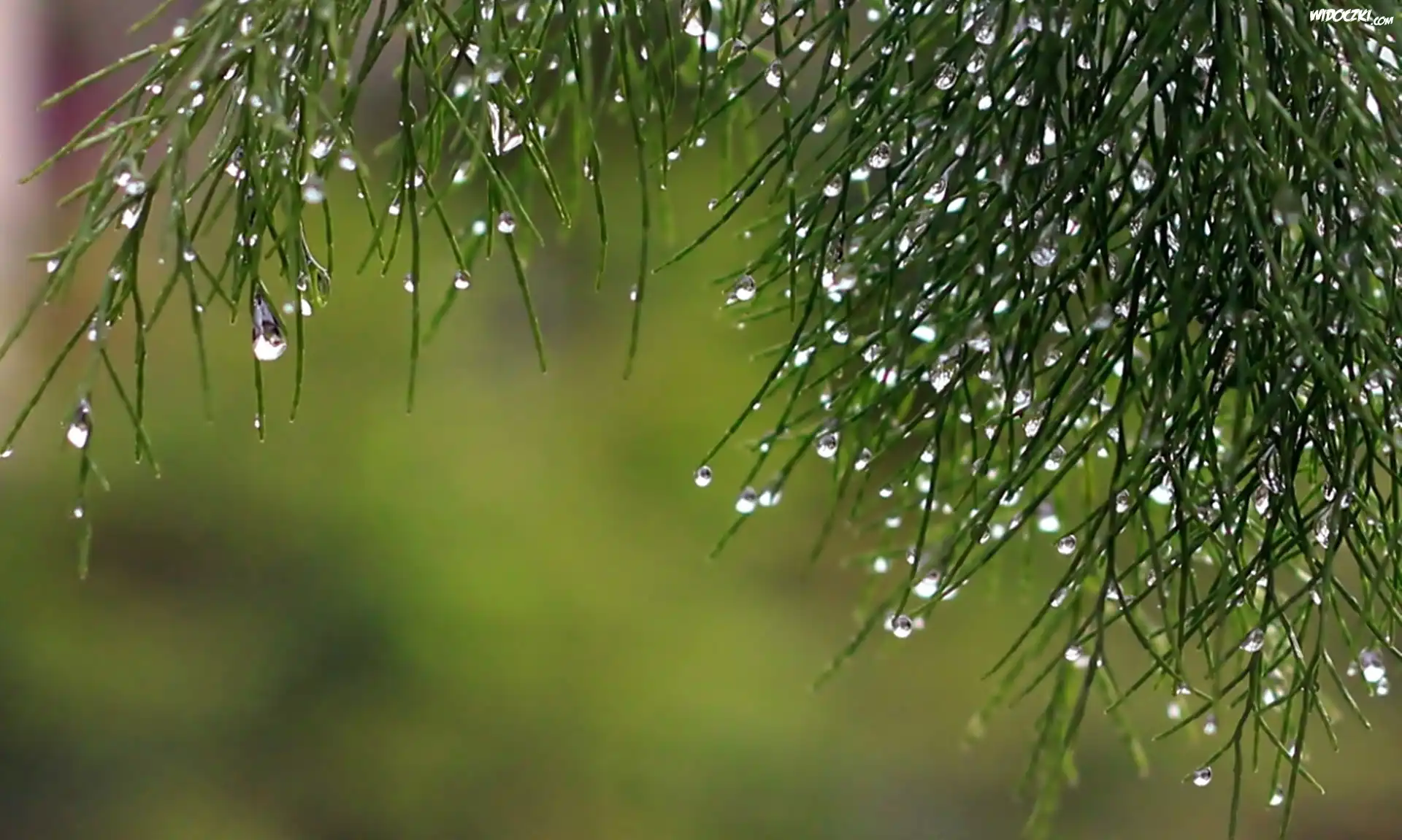 Zdjęcia, Makro, Gałązki, Tuja, Krople Deszczu