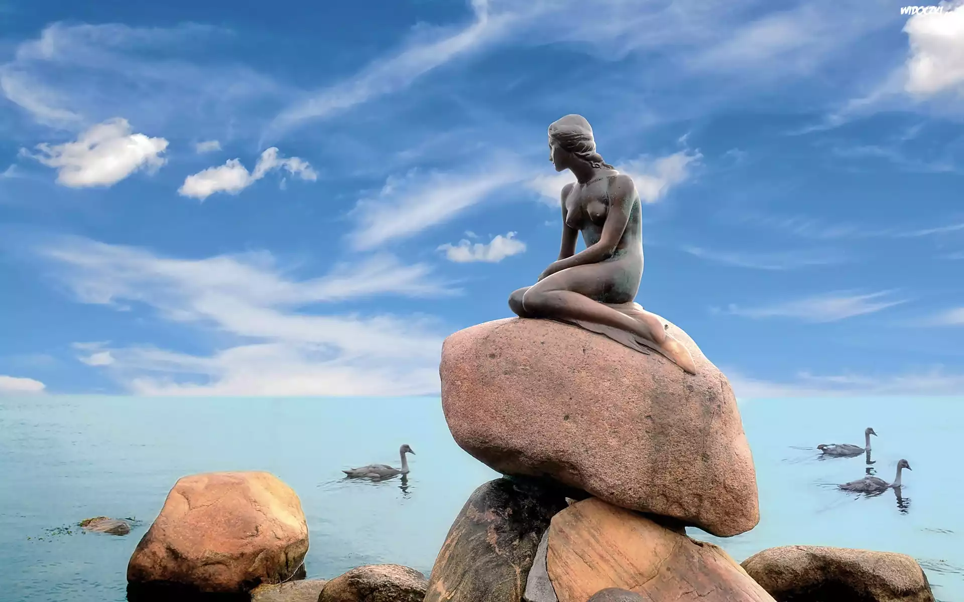 Dania, Kopenhaga, Posąg, Mała Syrenka, Kamienie