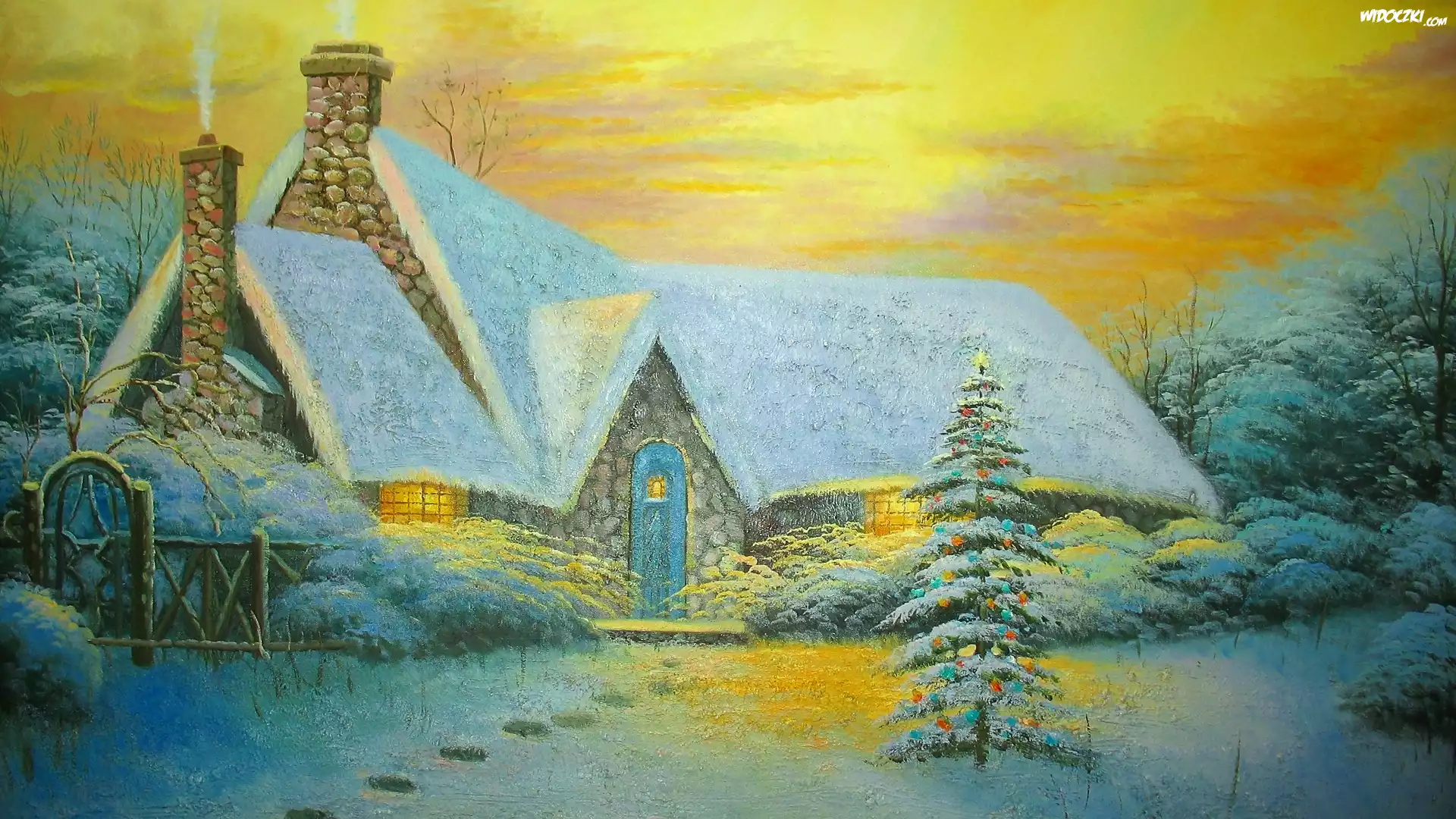 Zdjęcia, Malarstwo, Obraz, Zima, Boże Narodzenie, Dom