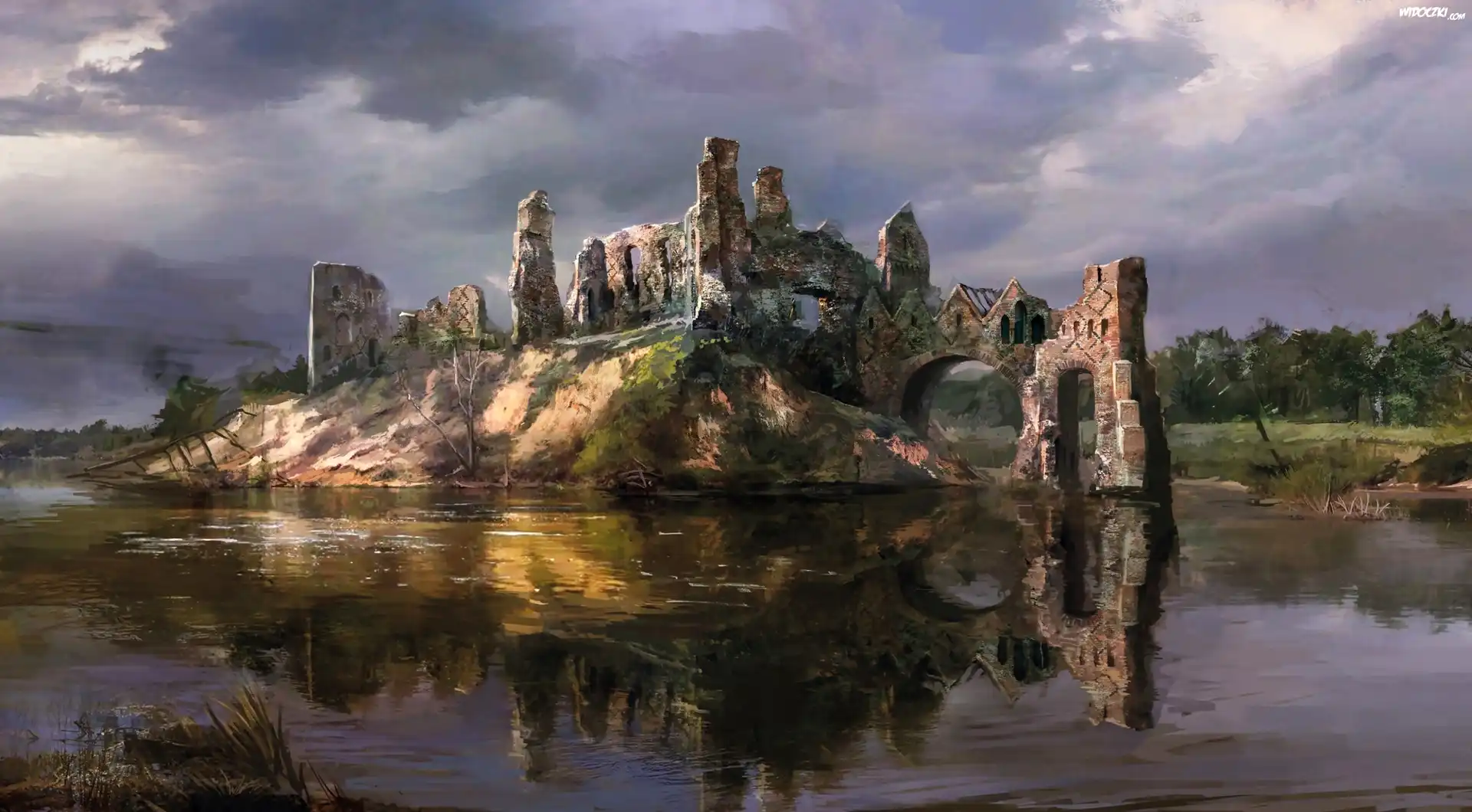 Zdj臋cia, Malarstwo, Obraz, Ruiny, Jezioro