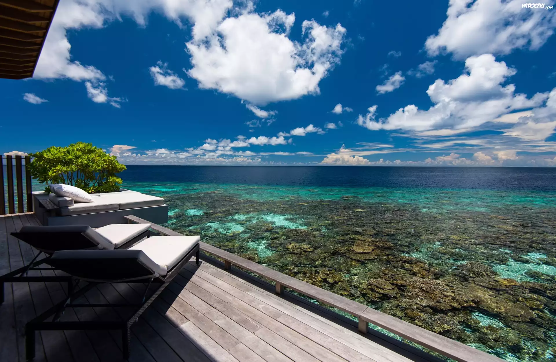 Zdjęcia, Malediwy, Ocean, Taras, Leżaki, Kurort, Wakacje