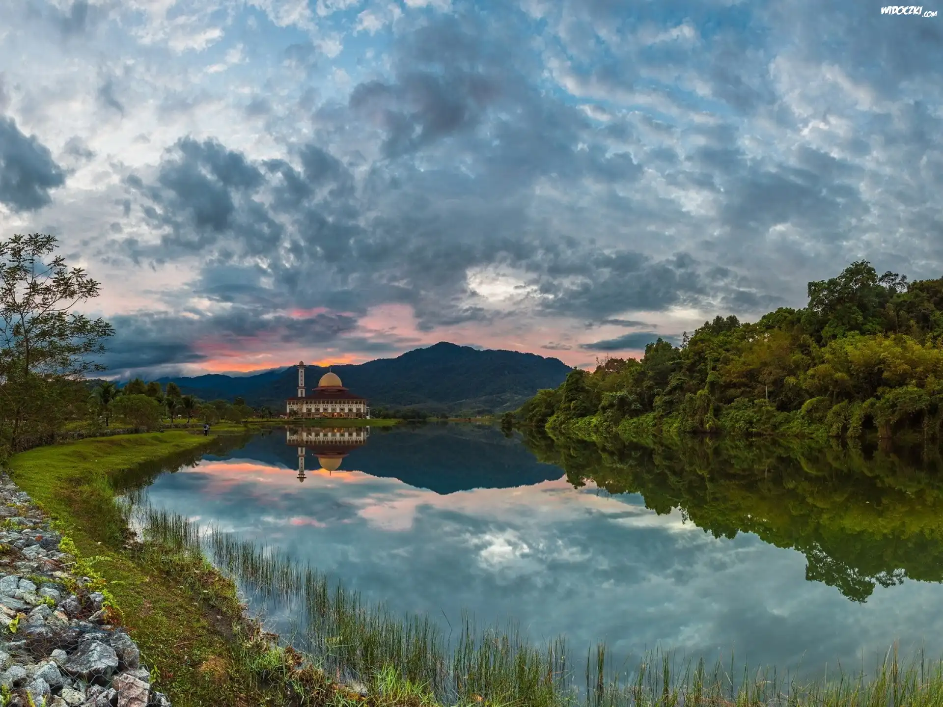 Malezja, Chmury, Rzeka, Góry, Las, Drzewa