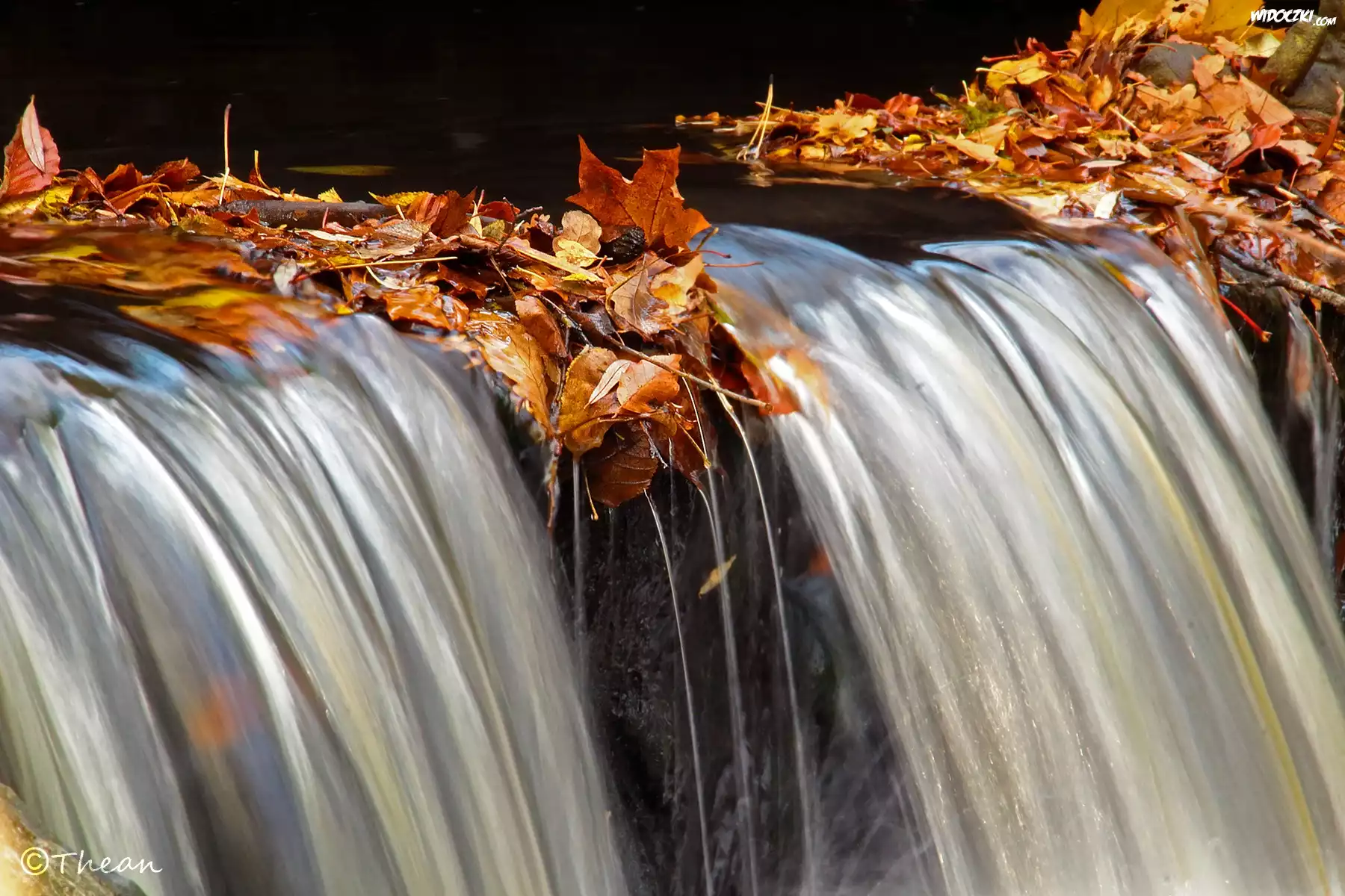 Zdjęcia, Mały, Wodospad, Suche, Liście
