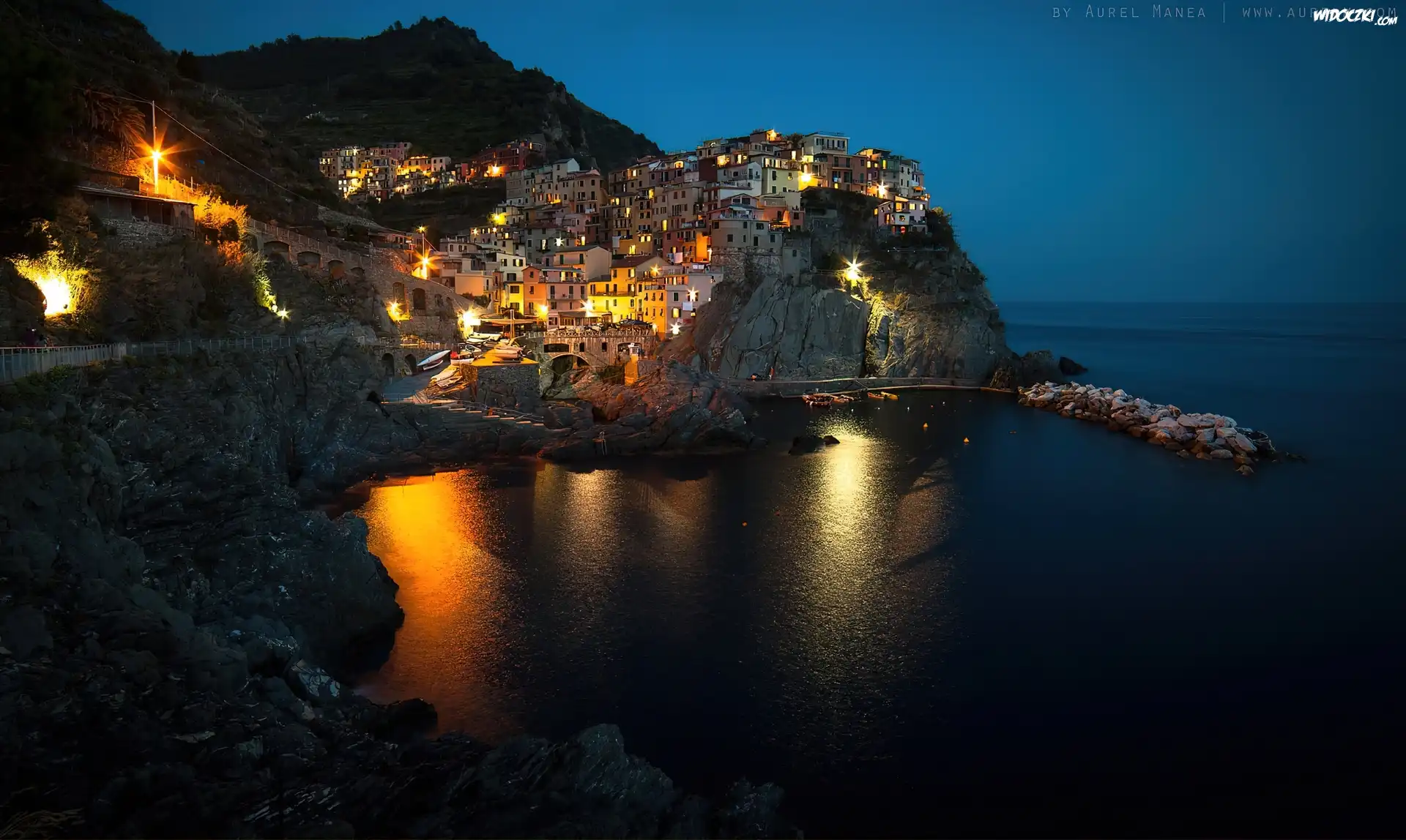 Zdjęcia, Manarola, Włochy, Wybrzeże, Noc