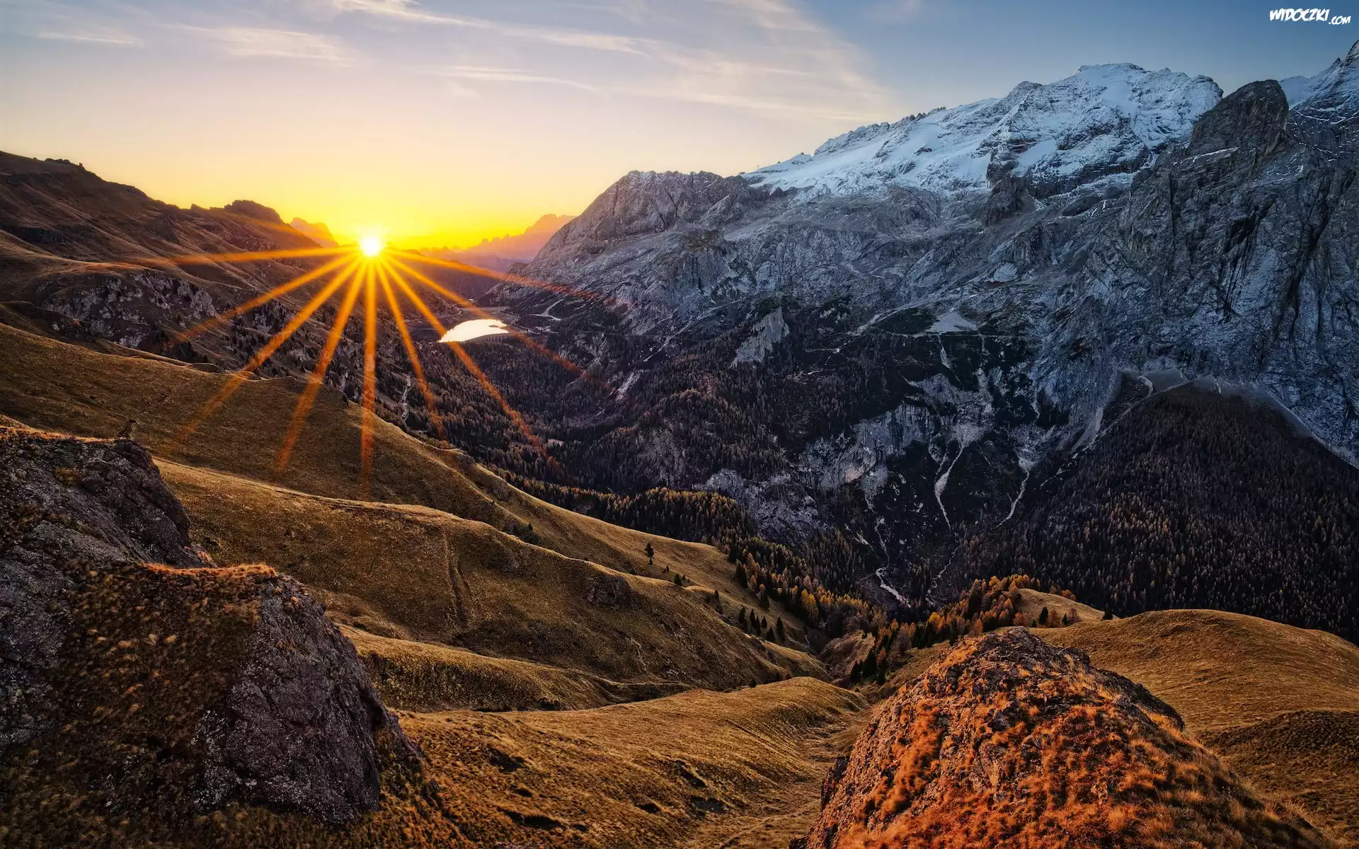 Włochy, Góry, Dolomity, Marmolada, Promienie słońca, Jesień
