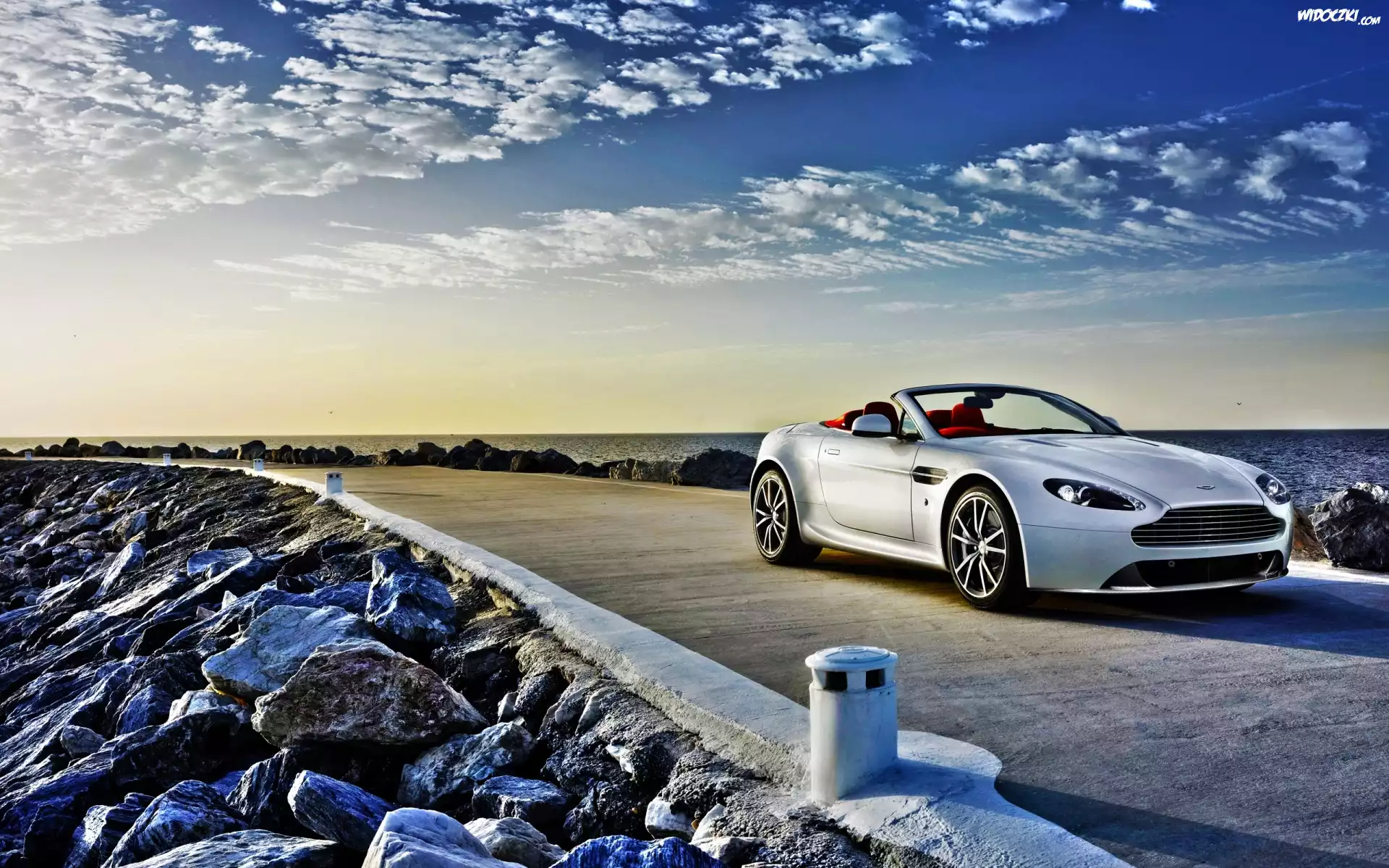 Aston Martin, V8, Vantage, Droga, Kamienie, Morze