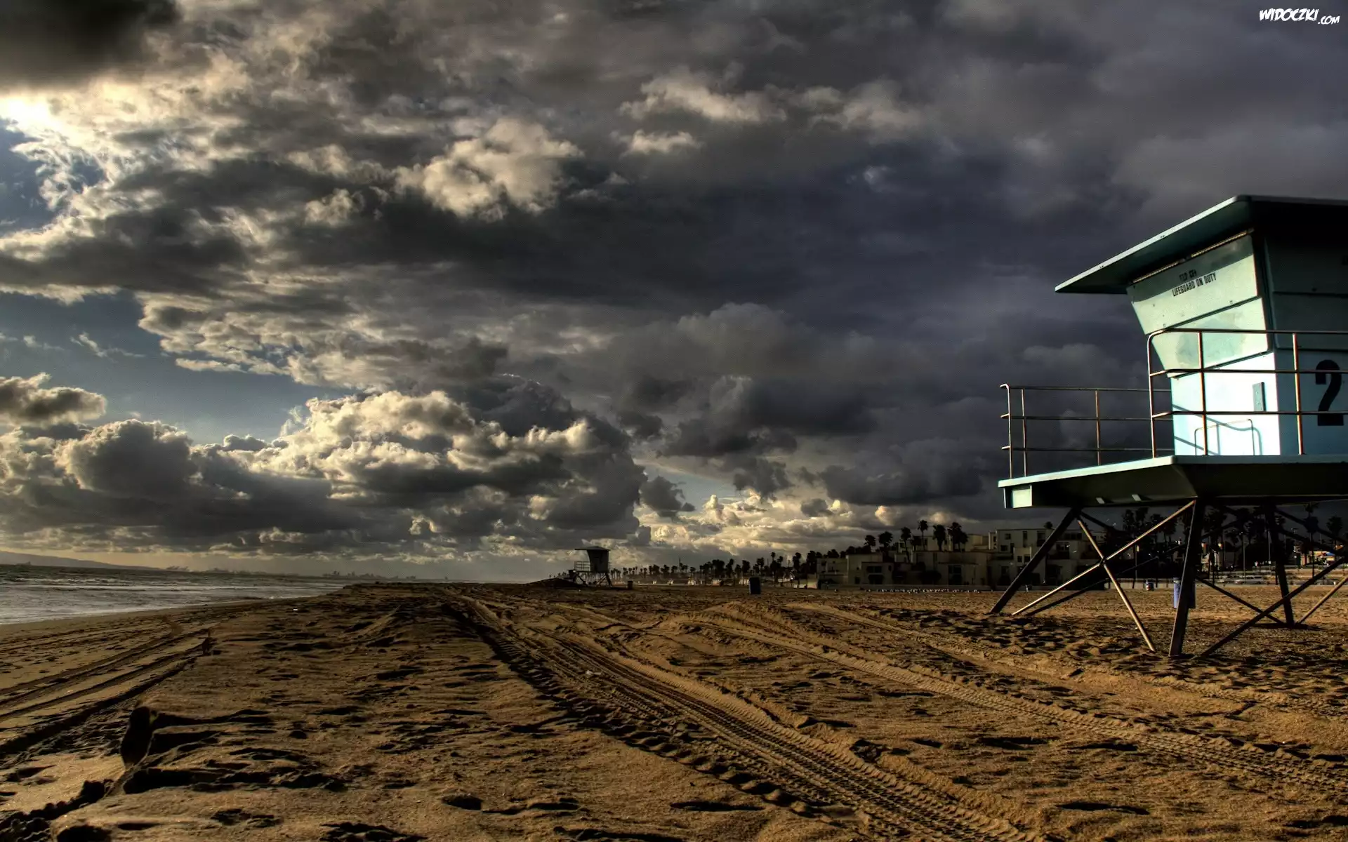 Zdjęcia, Marze, Plaża, Czarne, Chmury, Budka, Ratownika