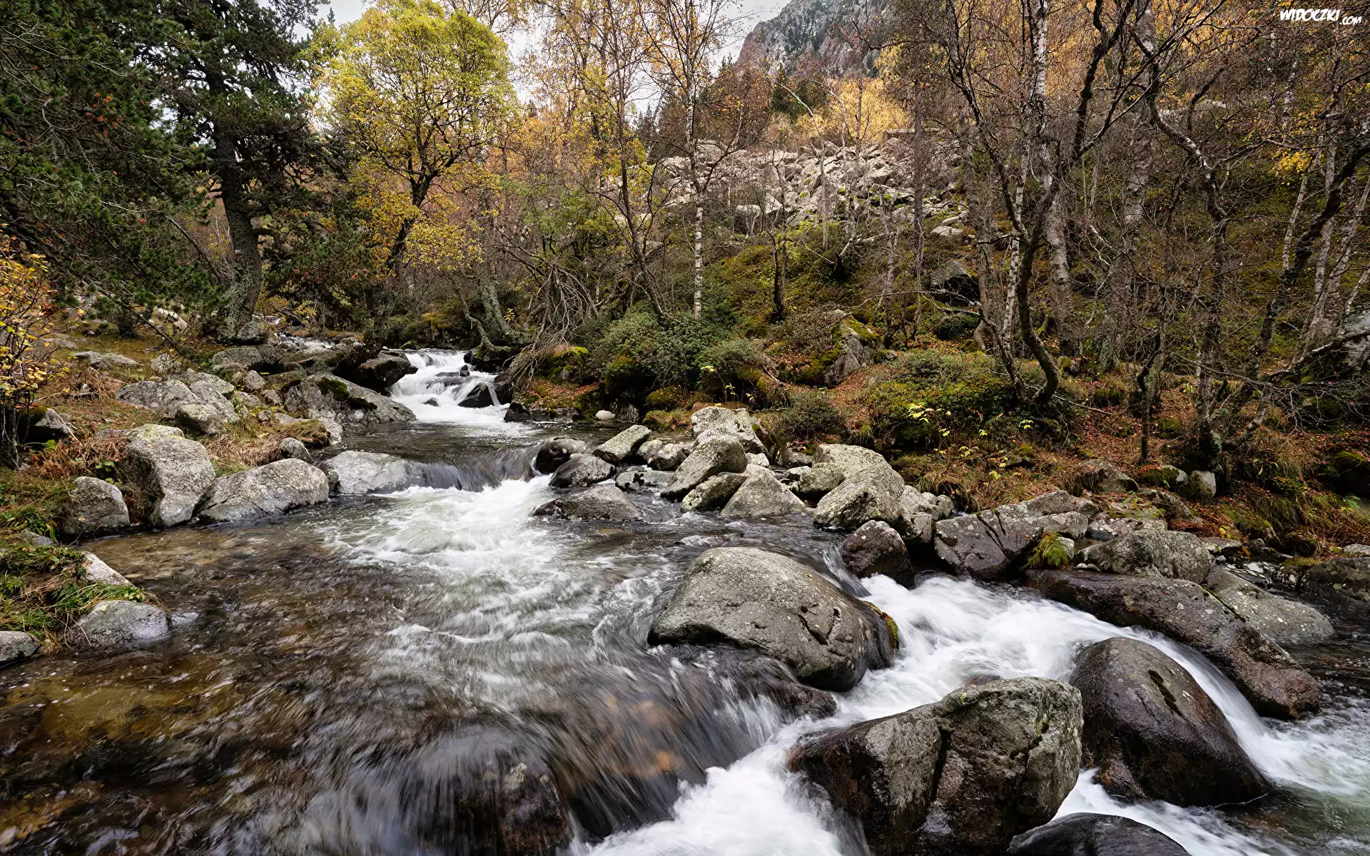 Zdjęcia, Góry, Rzeka, Kamienie, Mech, Drzewa, Las, Jesień