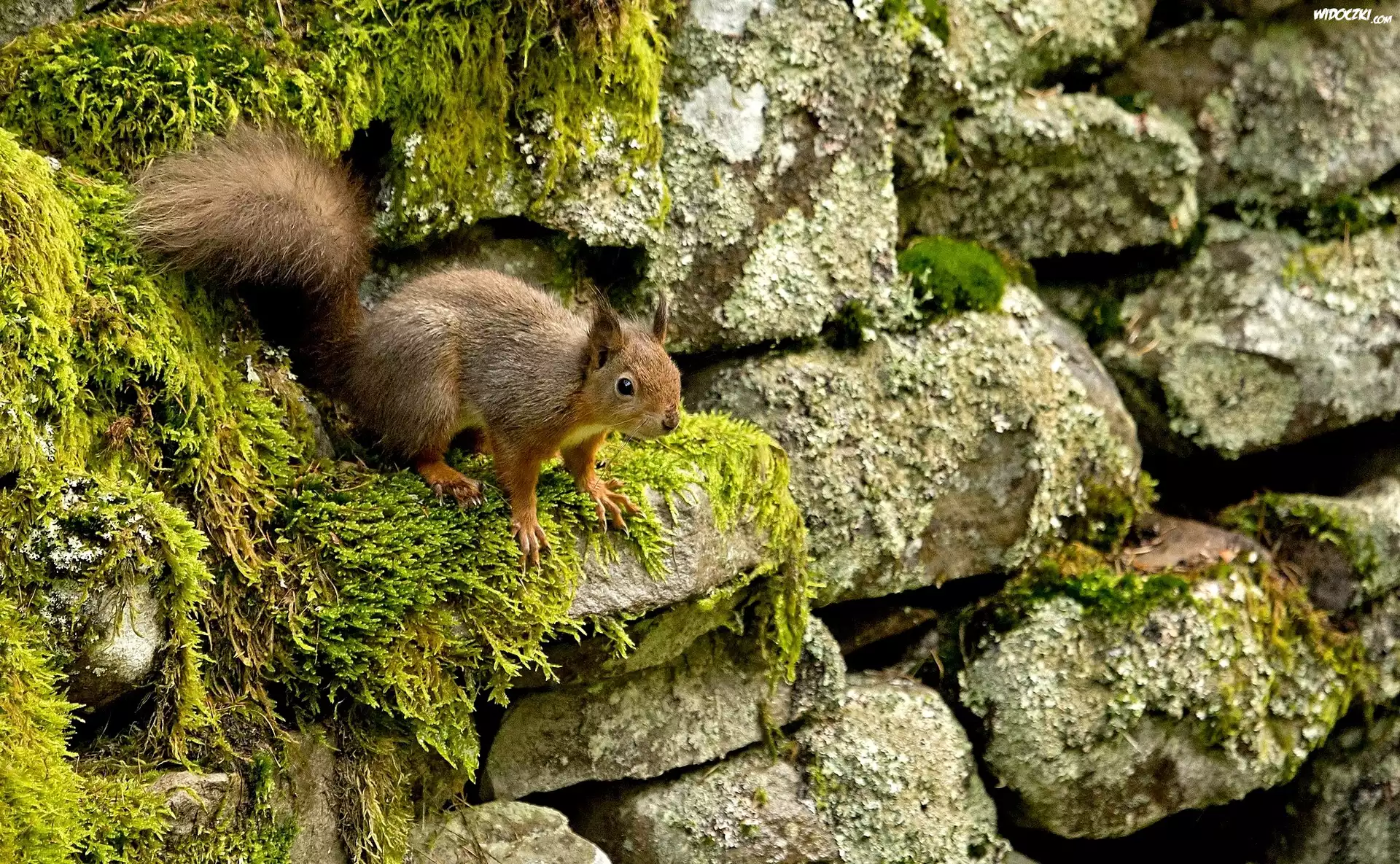 Zdjęcia, Kamienie, Mech, Wiewiórka