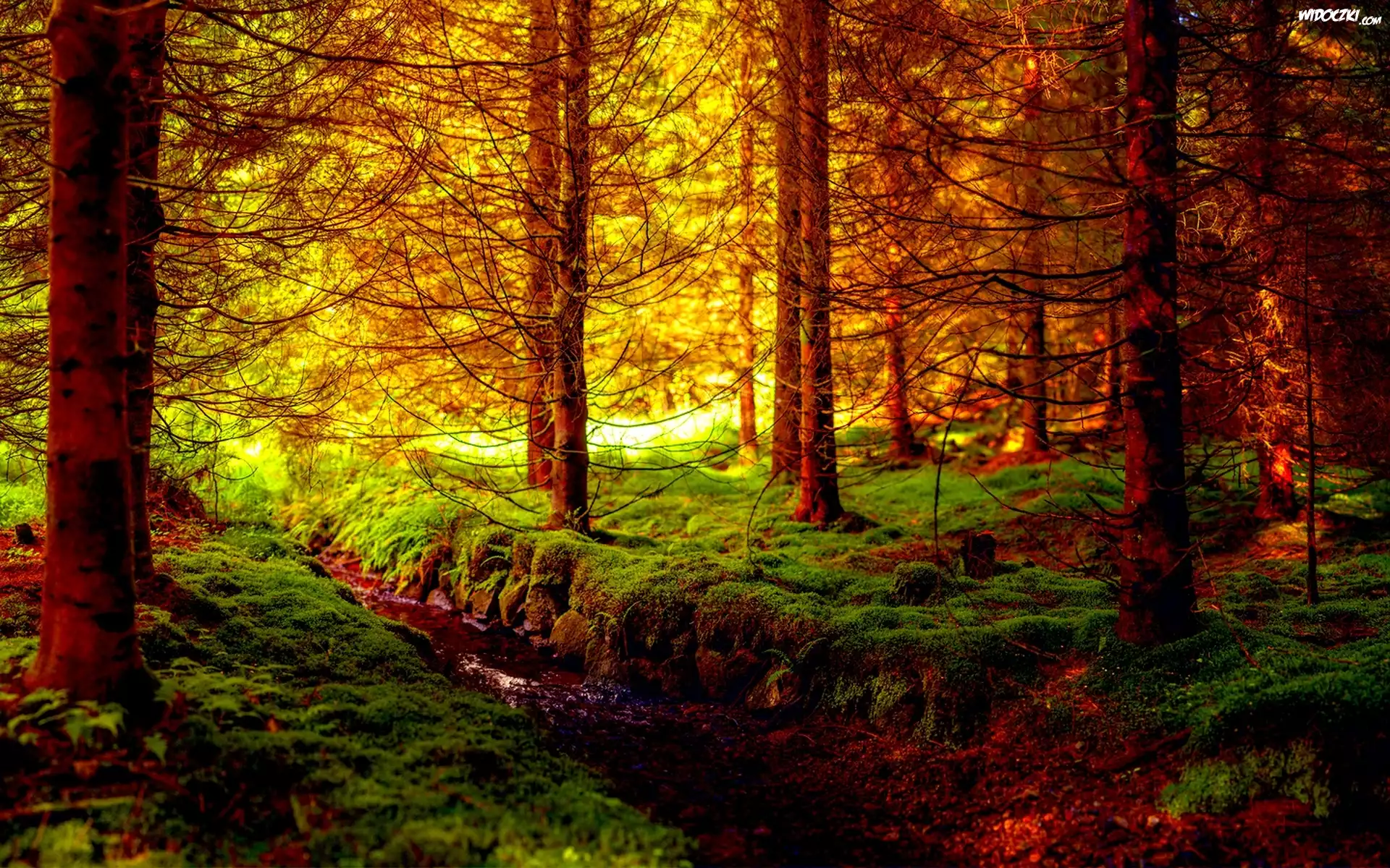 Zdjęcia, Las, Mech, Strumyk