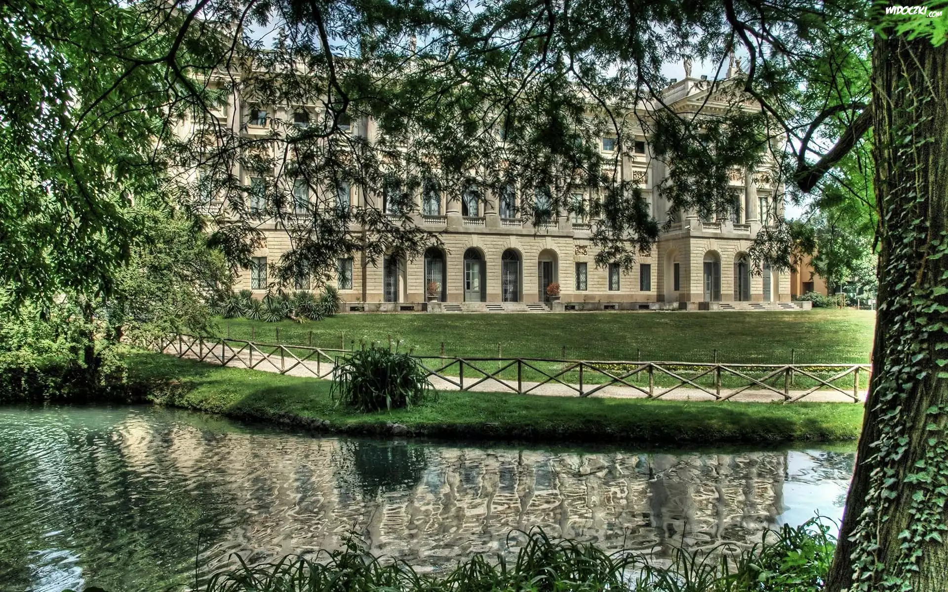 Zdjęcia, Mediolan, Pałacyk, Park, Staw