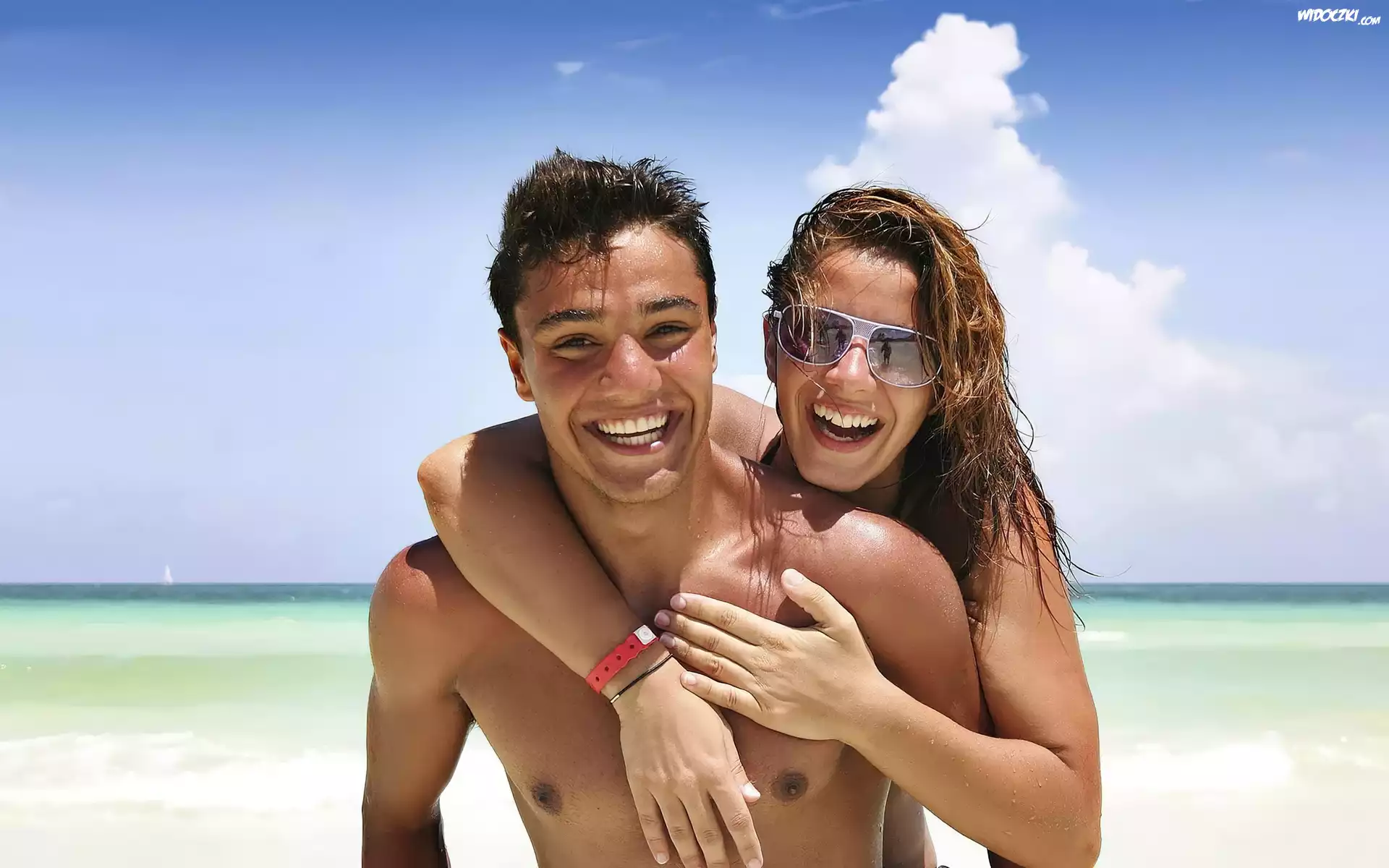 Zdjęcia, Mężczyzna, Kobieta, Plaża, Radość
