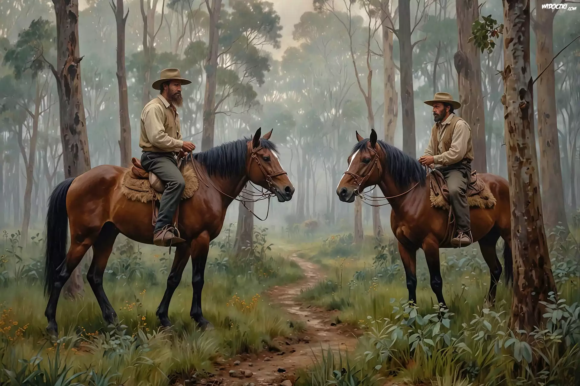 Mężczyźni, Konie, Las