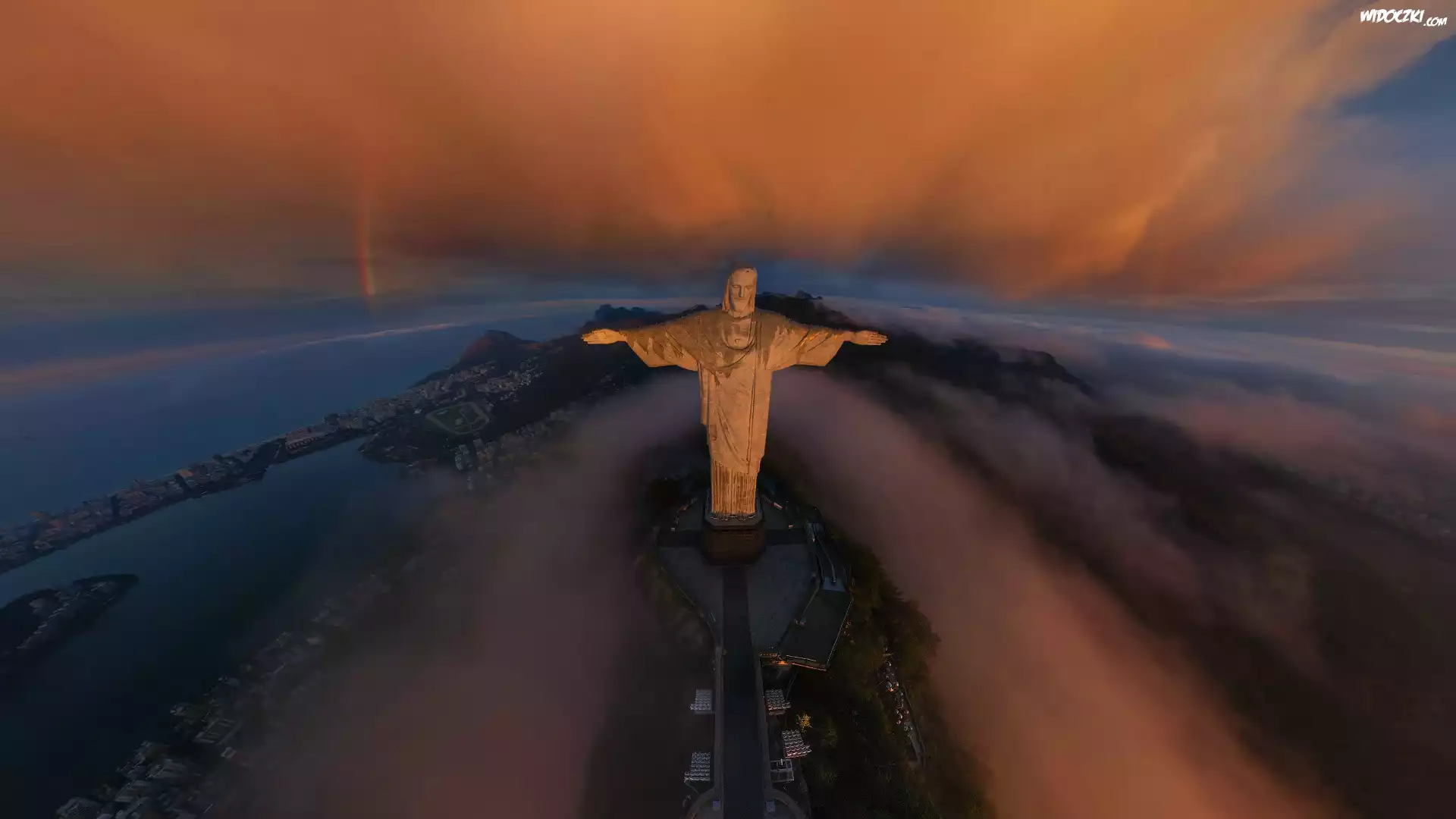Zdjęcia, Brazylia, Rio de Janeiro, Statua Chrystusa Zbawiciela, Chmury, Mgła