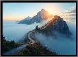 Zdjęcia, Góry, Mgła, Droga, Wschód Słońca