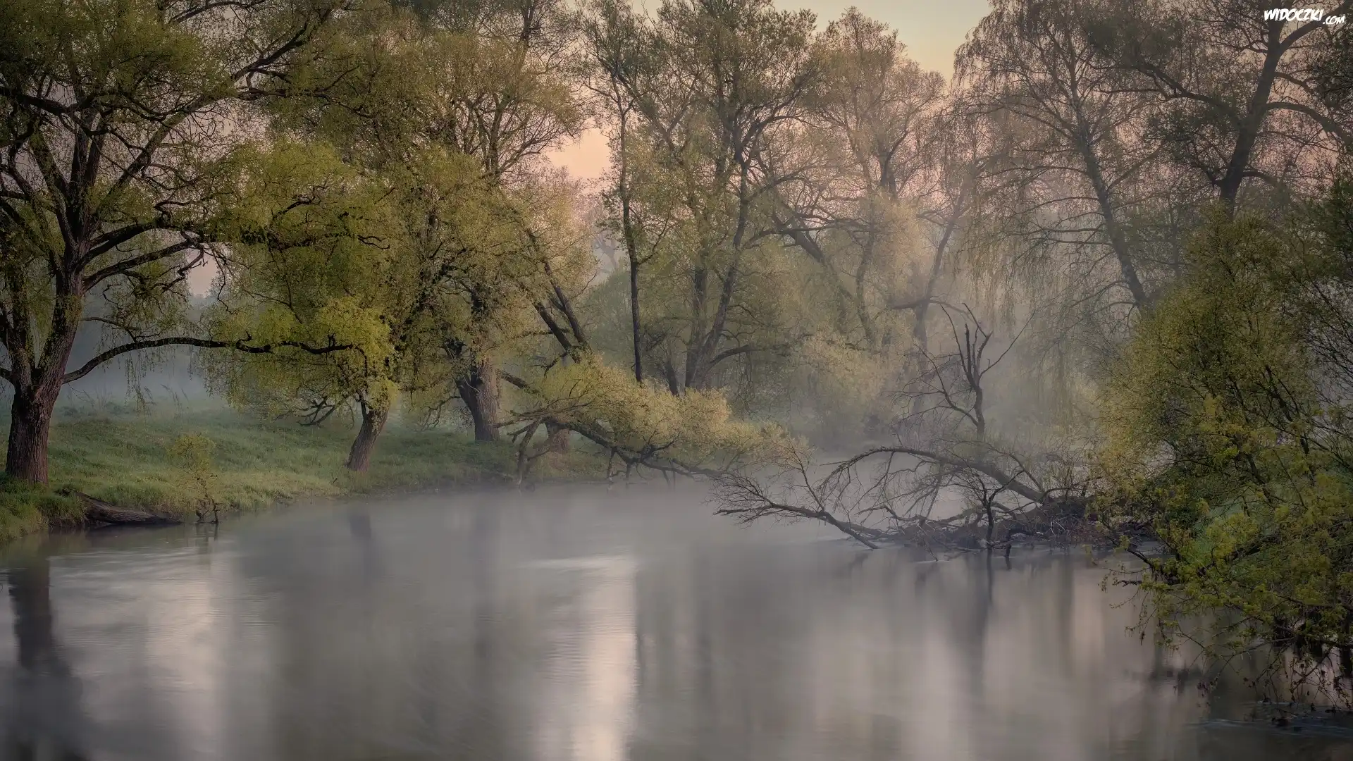 Zdjęcia, Drzewa, Mgła, Rzeka Istra, Obwód moskiewski, Rosja