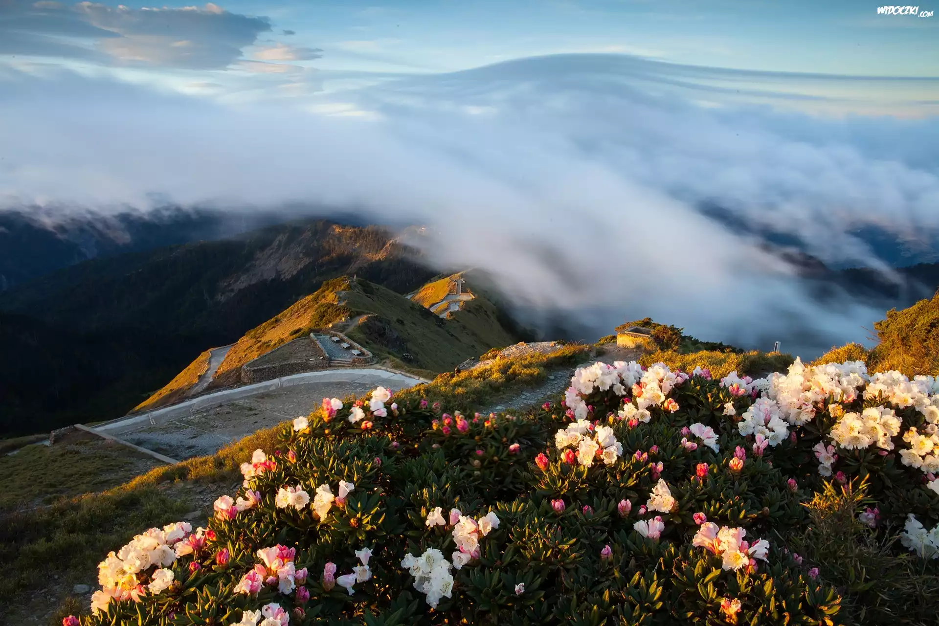 Zdjęcia, Góry, Mgła, Kwiaty