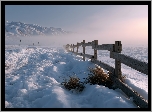 Zima, Ogrodzenie, Góry, Mgła, Rośliny, Grafika AI