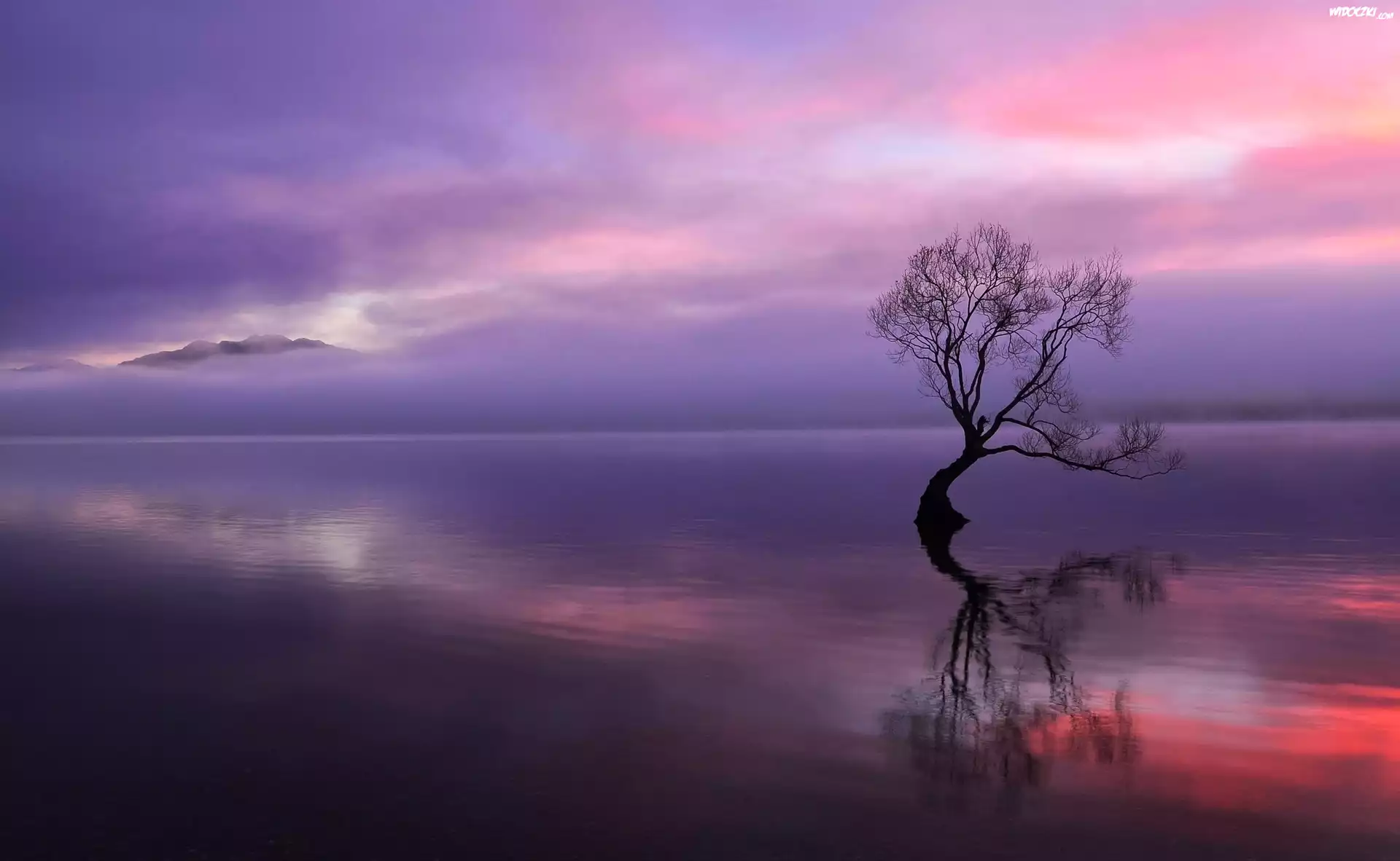 Zdjęcia, Jezioro, Mgła, Drzewko
