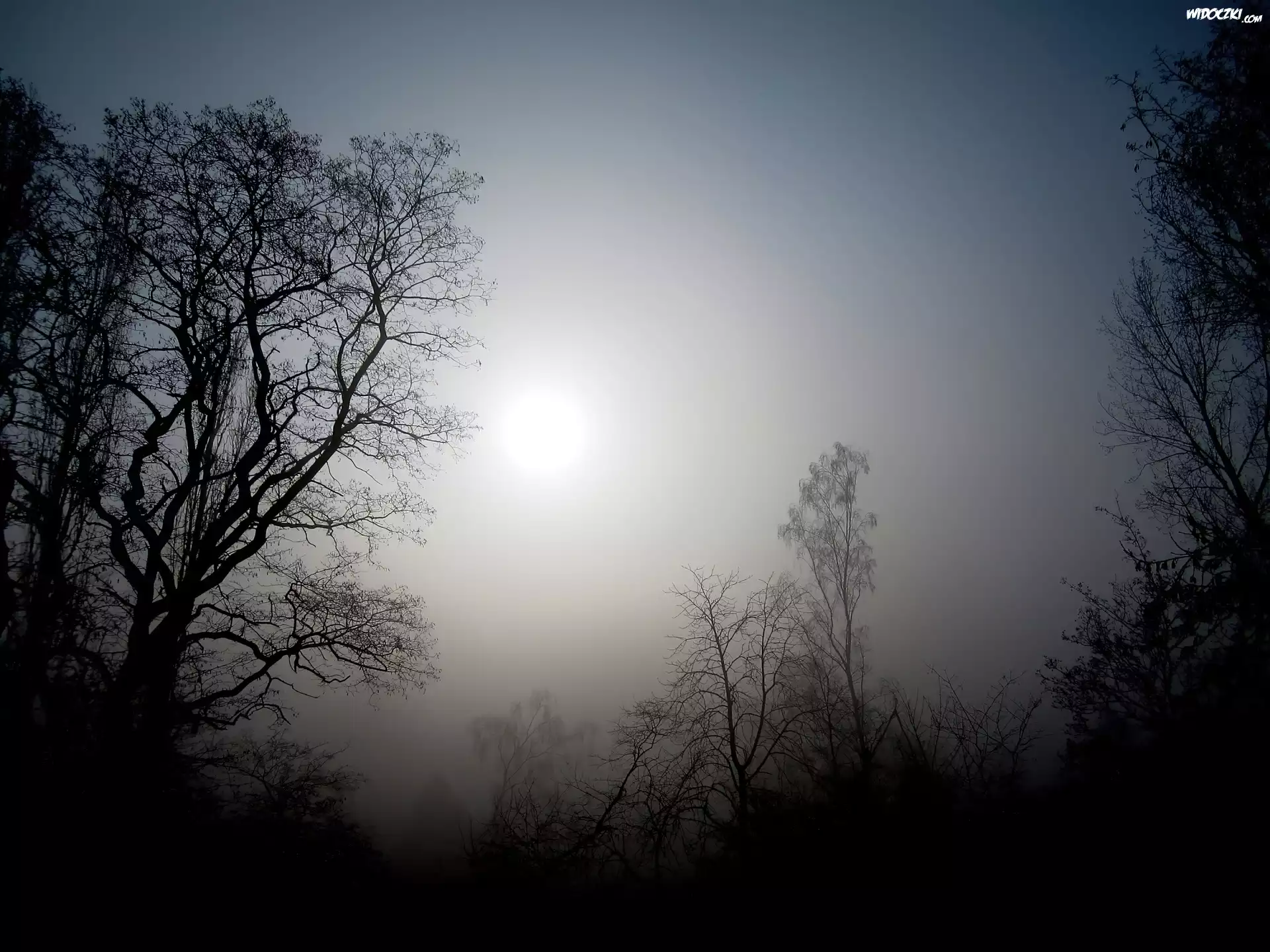 Zdjęcia, Krajobraz, Mgła, Drzewa