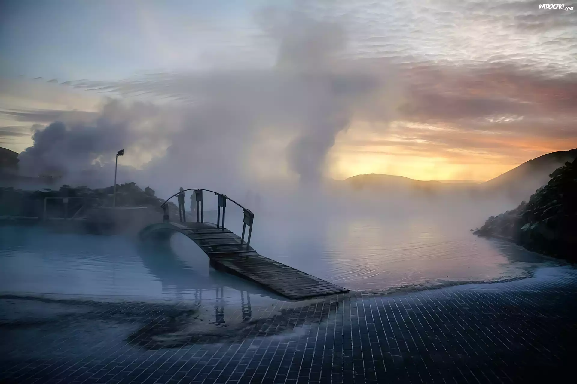Zdjęcia, Mostek, Mgła, Niebo