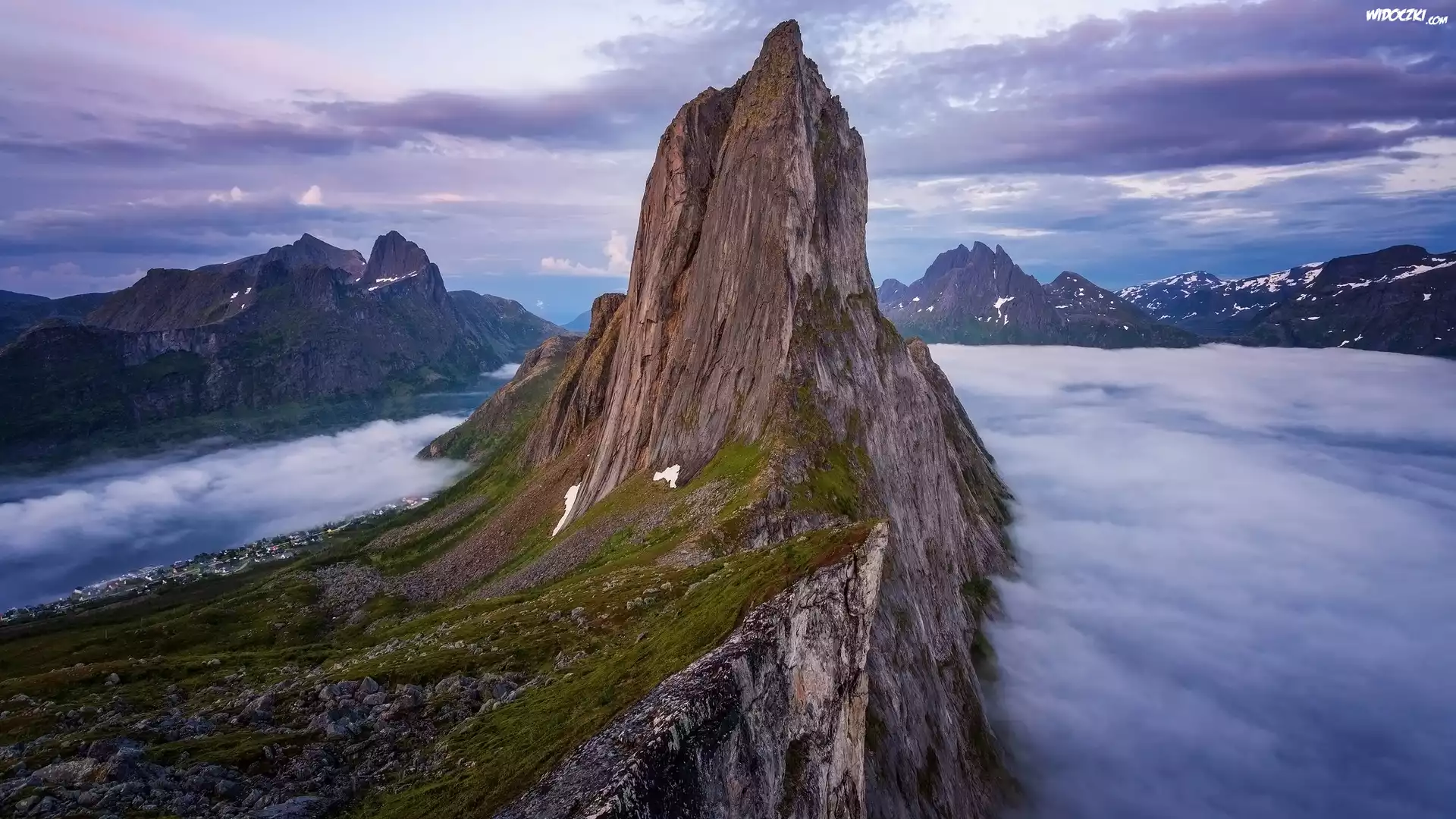Zdjęcia, Góry, Segla, Skała, Mgła, Senja, Norwegia
