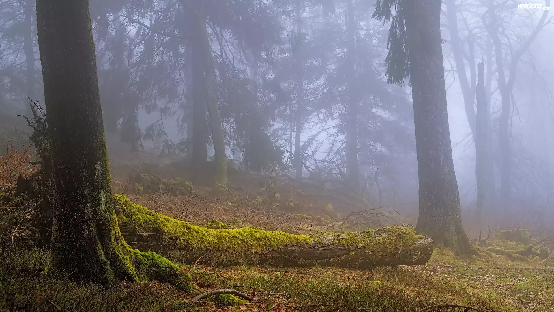 Zdjęcia, Las, Mgła, Omszałe, Pnie, Drzewa