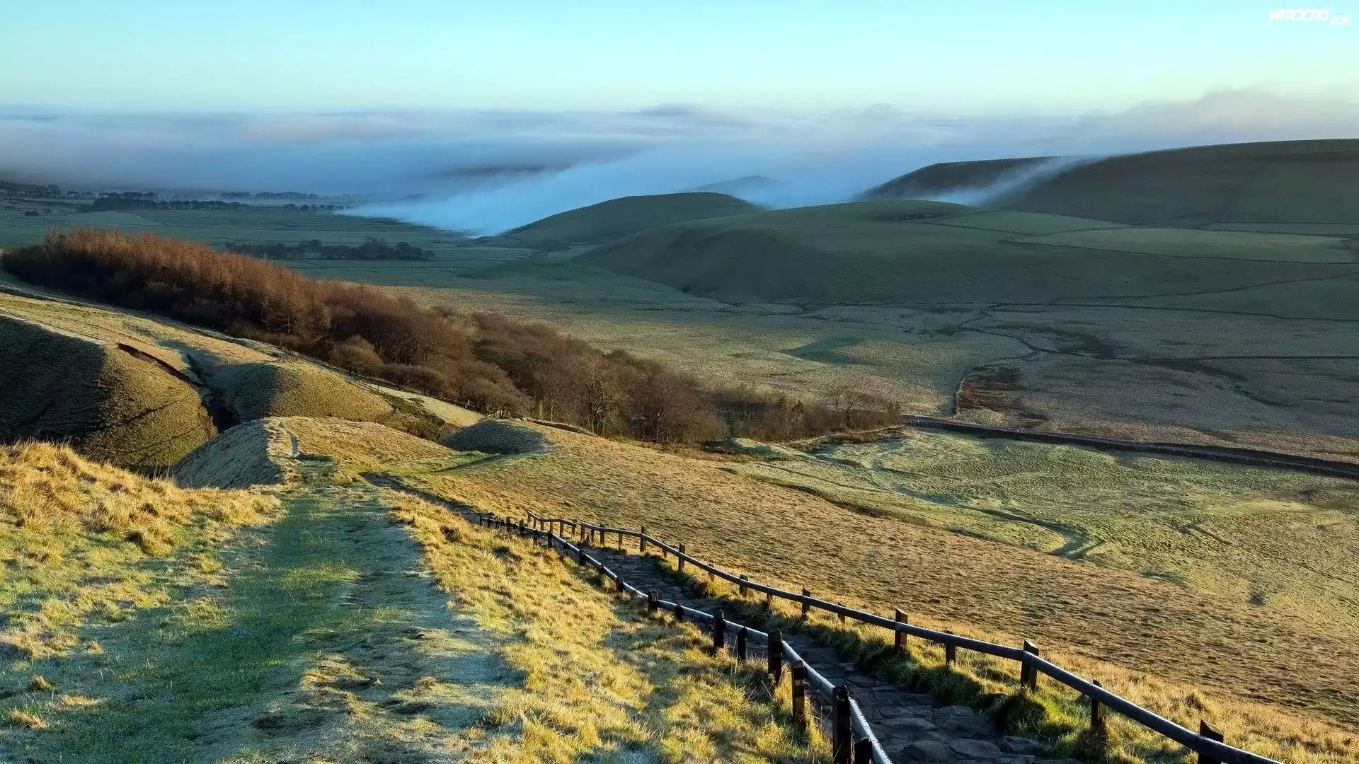 Zdjęcia, Wzgórza, Mgła, Dróżka