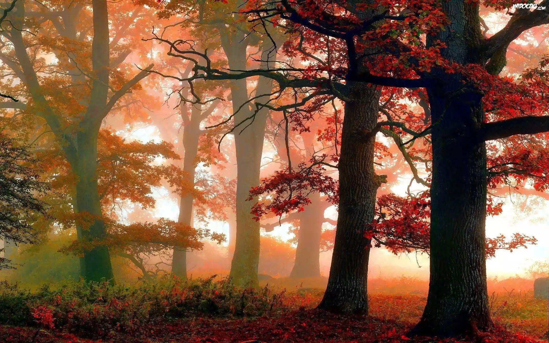 Mglisty, Poranek, Las, Jesień, Szwecja