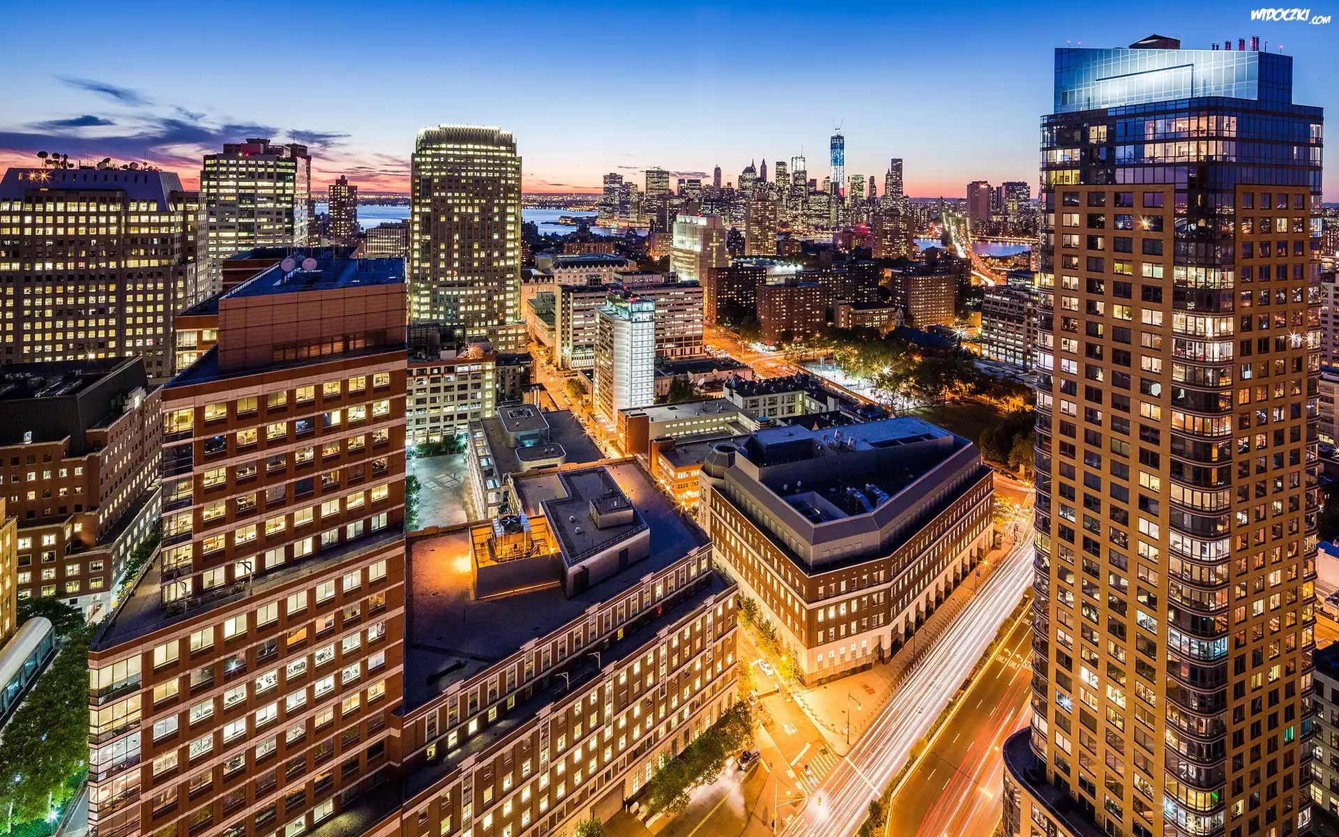 Zdj臋cia, Drapacze, Chmur, Biurowce, Rzeka, Brooklyn, Nowy, Jork, Panorama, Miasta