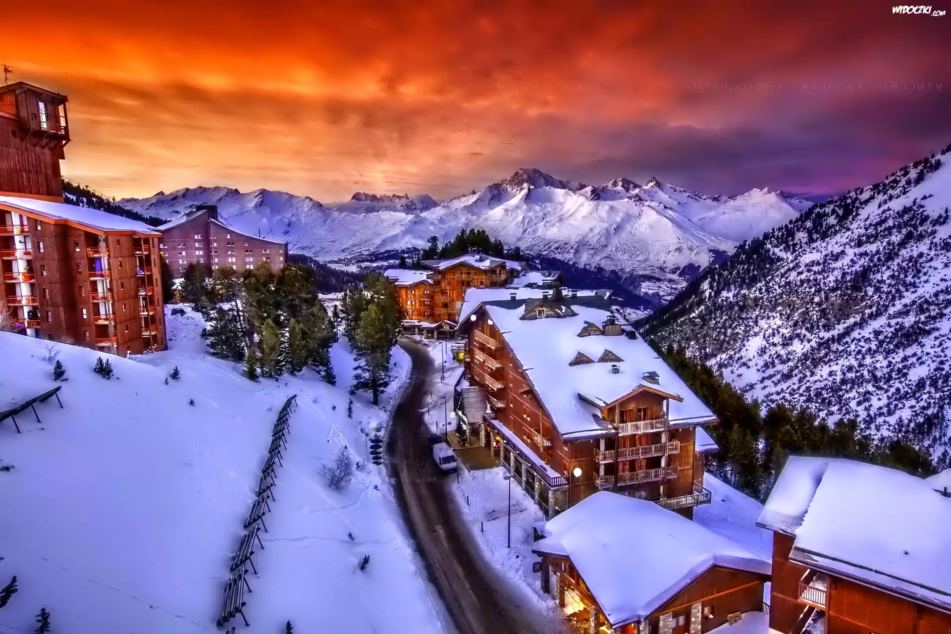 Zdjęcia, Miasteczko, Góry, Droga, Zima