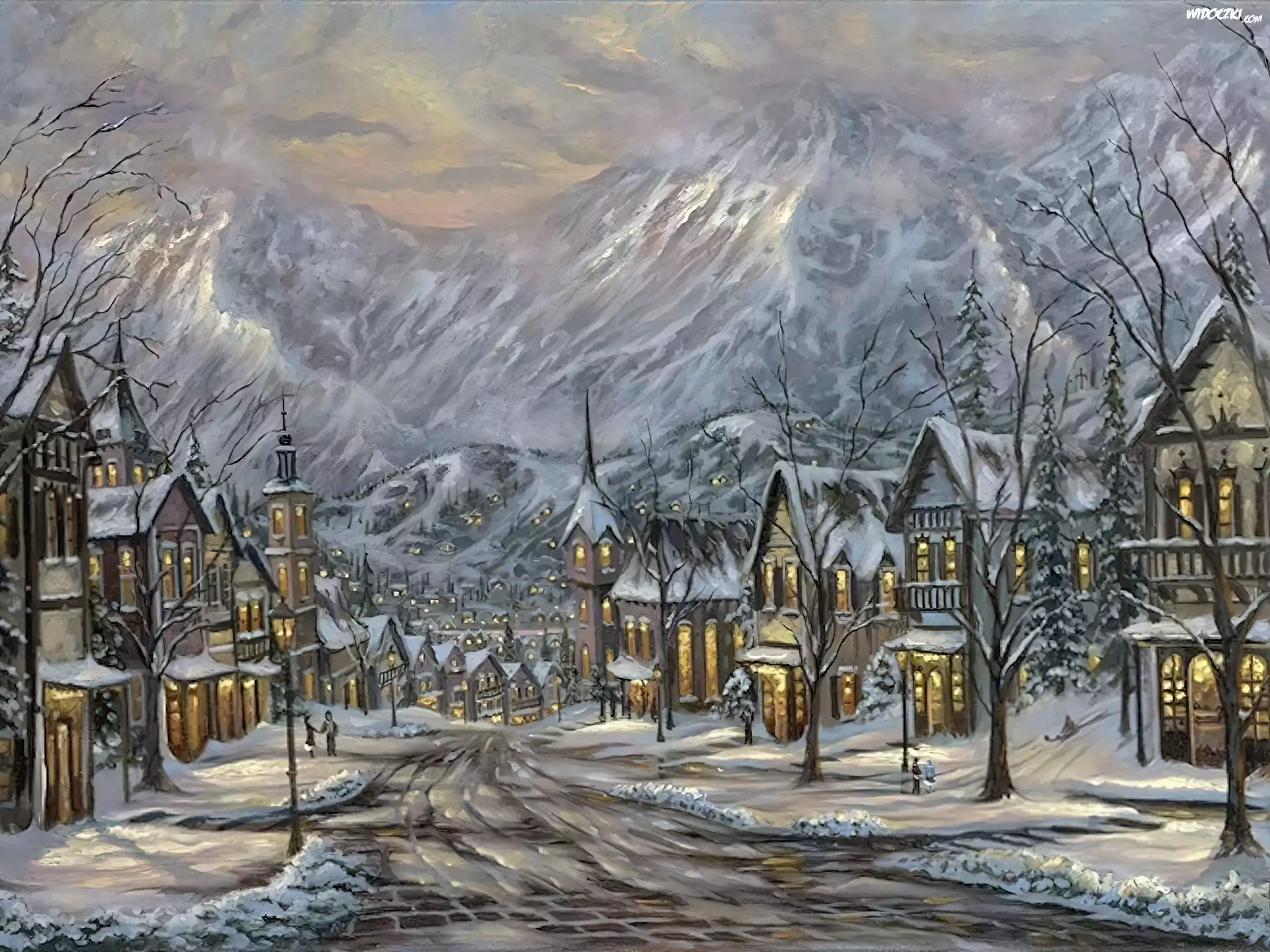 Zdjęcia, Miasteczko, Ulica, Domy, Góry, Zima