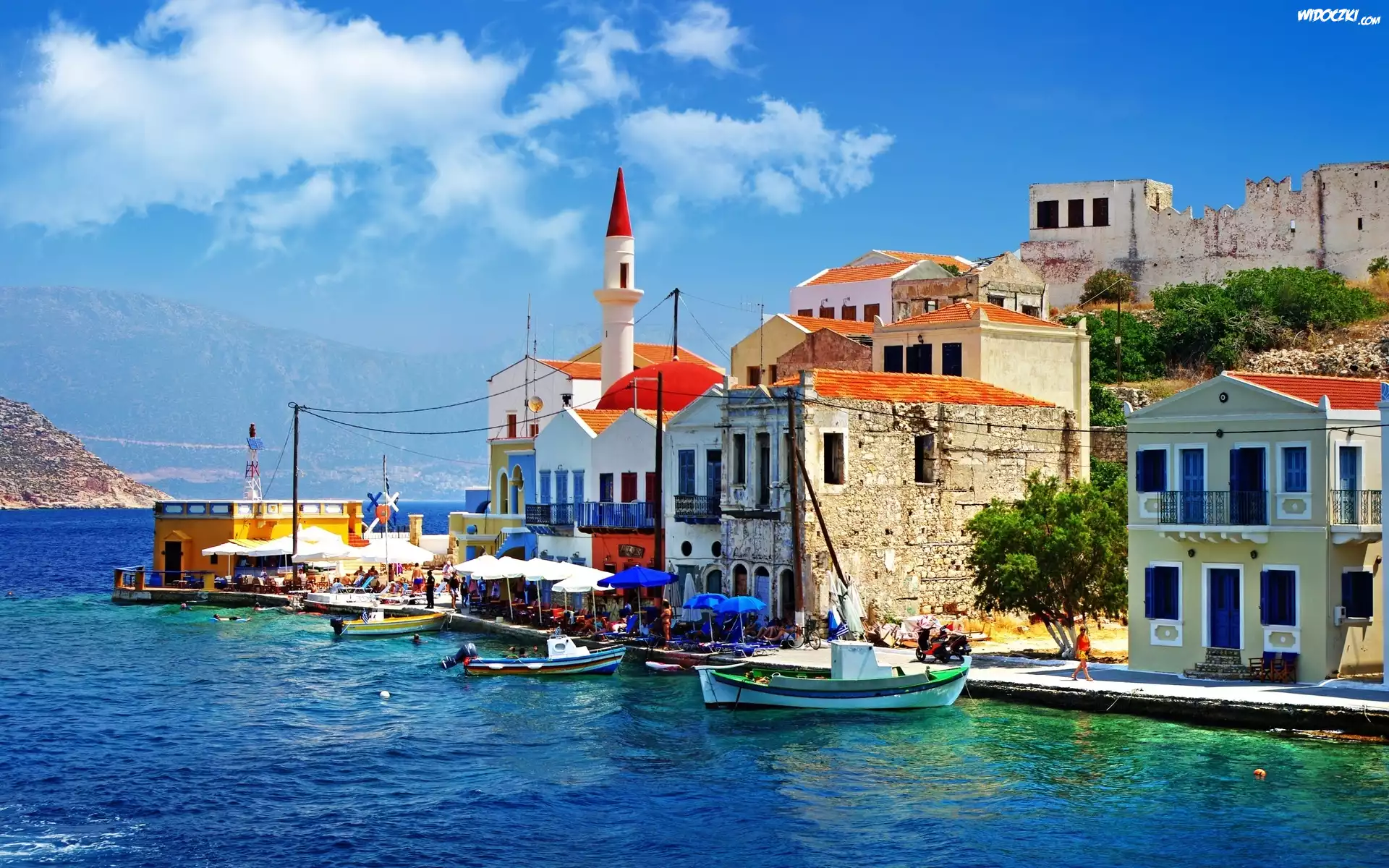 Miasteczko, Na, Wybrzeżu, Grecja, Łódki