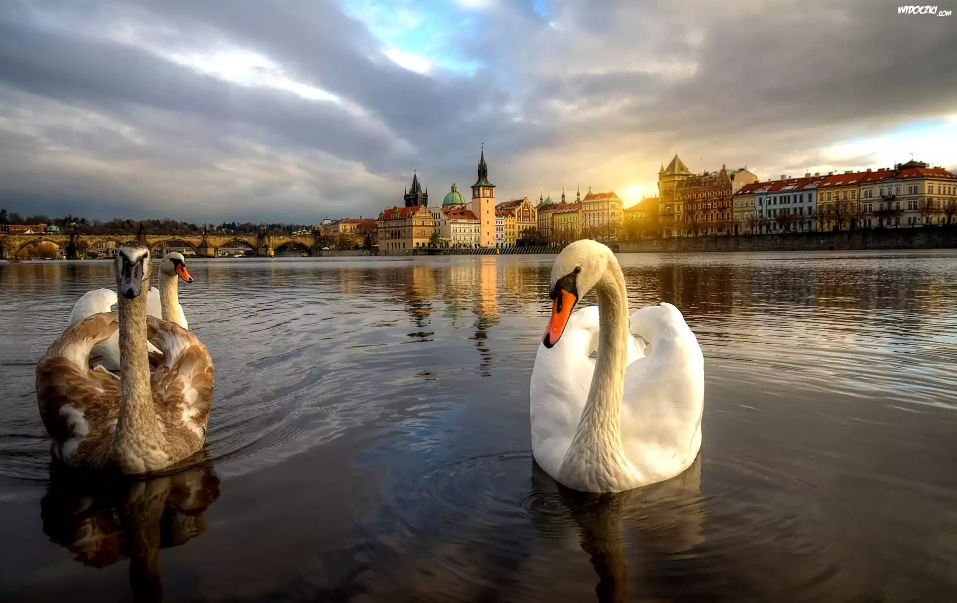 Zdjęcia, Łabędzie, Miasto, Rzeka